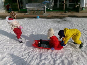 「動かないな、、、押してみる!」と工夫しながらソリを動かす姿もありました。