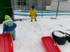 雪遊びは、季節ならではの自然に触れる貴重な機会です。全身で雪を感じ、楽しんで欲しいと思います。