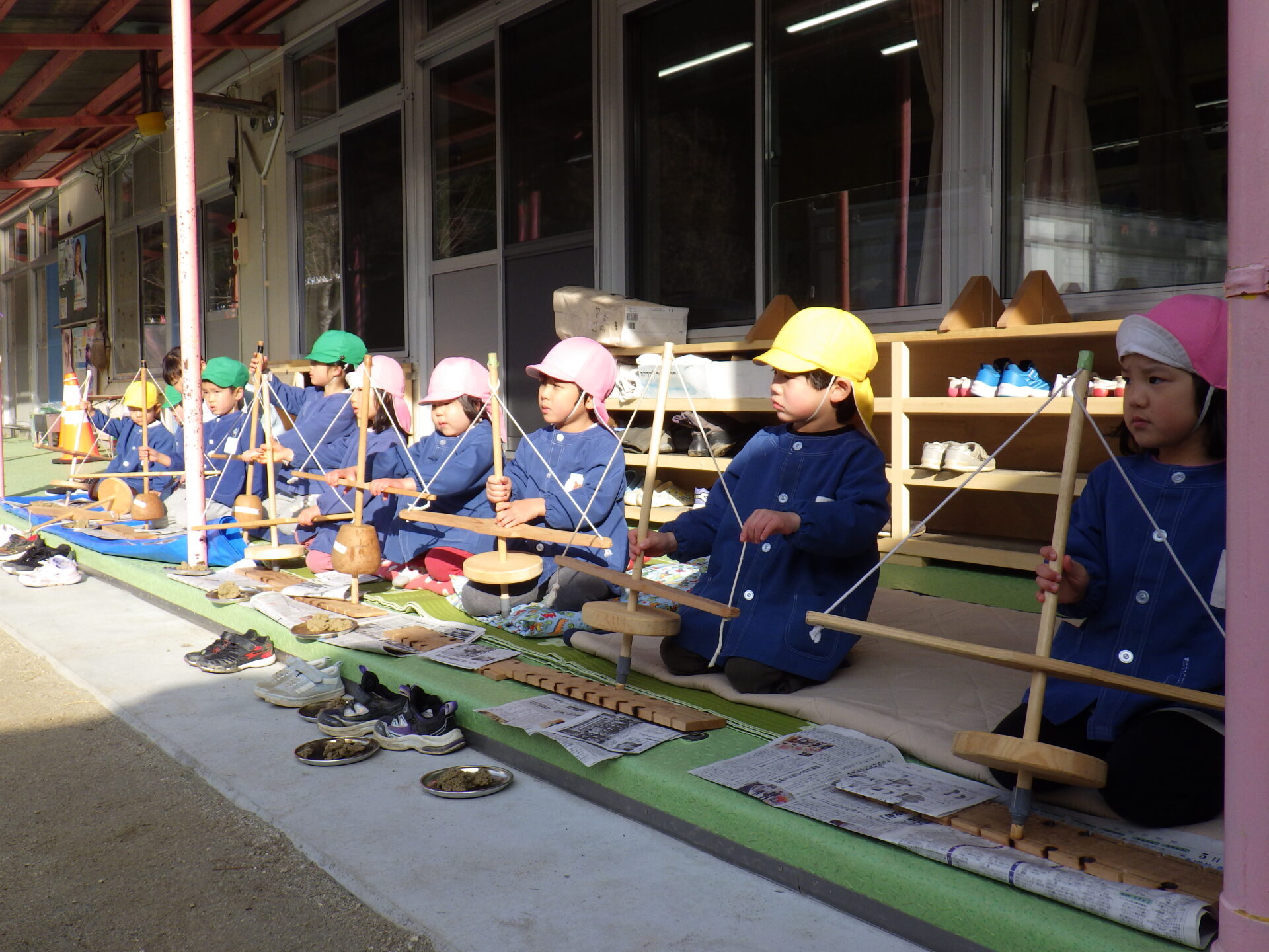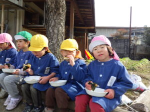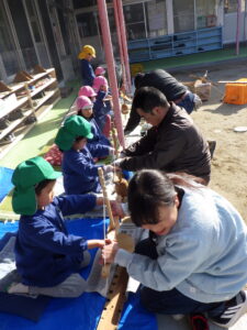 園児だけではなかなか難しいので、大人も手伝いました。