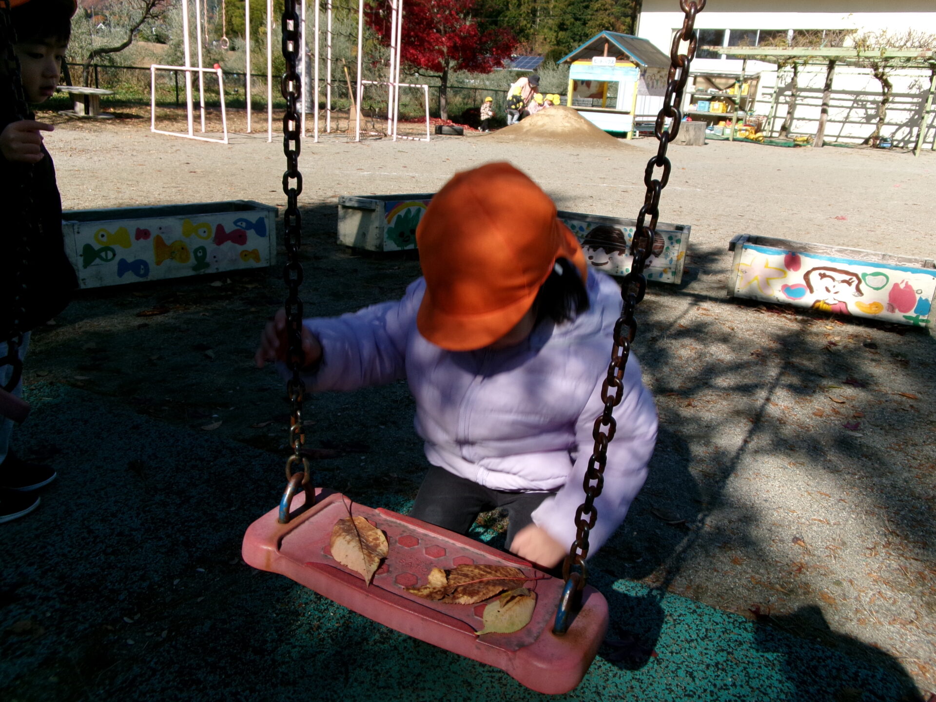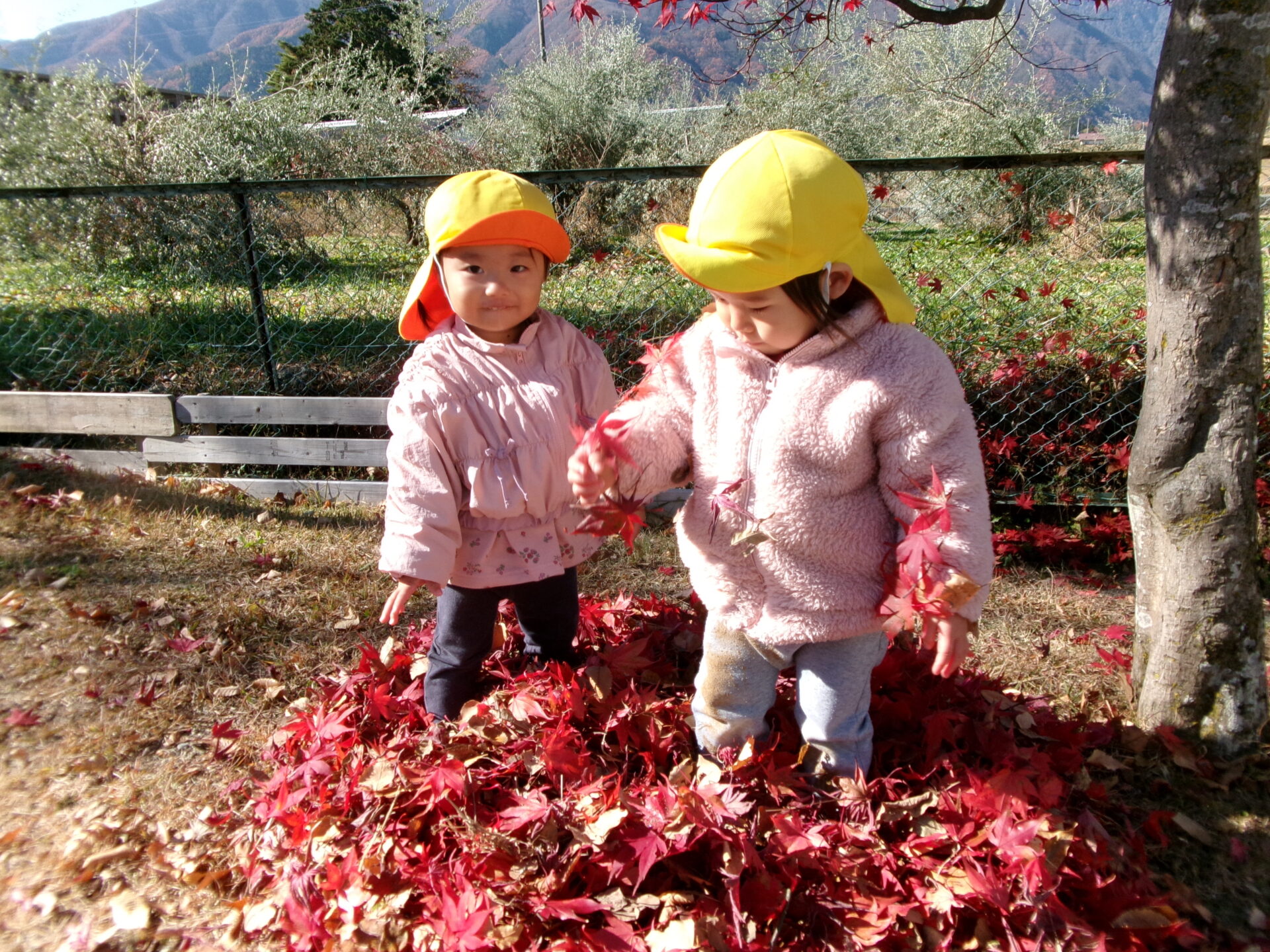 ・園庭の落ち葉で遊ぶ