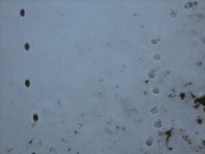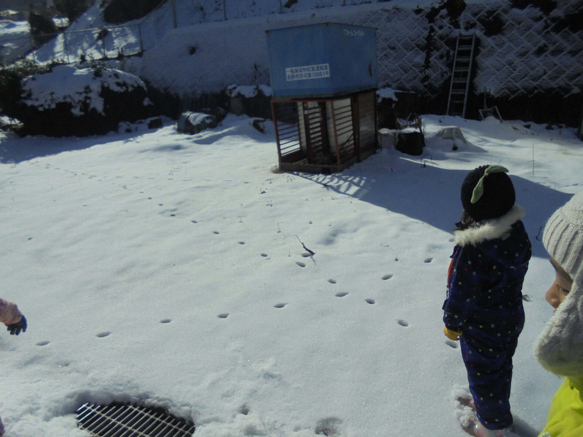 園周辺を歩くと、雪の降った後はいつも動物の足跡を見かけていました。