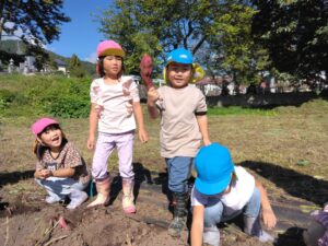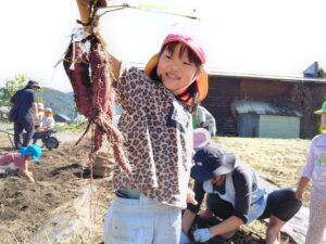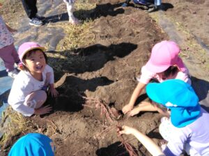 さつま芋掘りのとき、芋を揺らしながら土の中で芋がどのように伸びているか確かめながら、土を掘り進めていました。