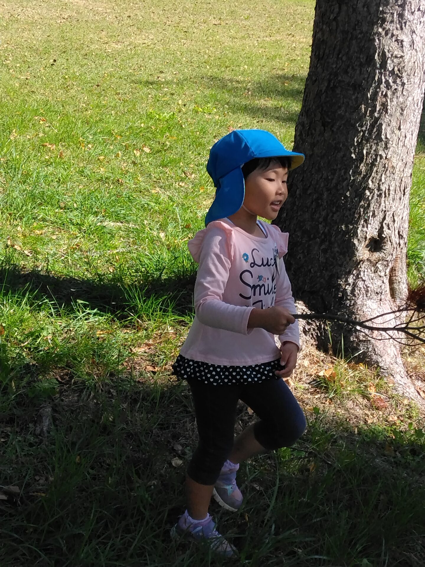 散歩の途中、畑の近くを通ると「はやく焼き芋食べたいな」腕を広げて「こーんなにおおきくなってるかな?」とさつま芋の生長を気にかけ、楽しみにしている様子でした。