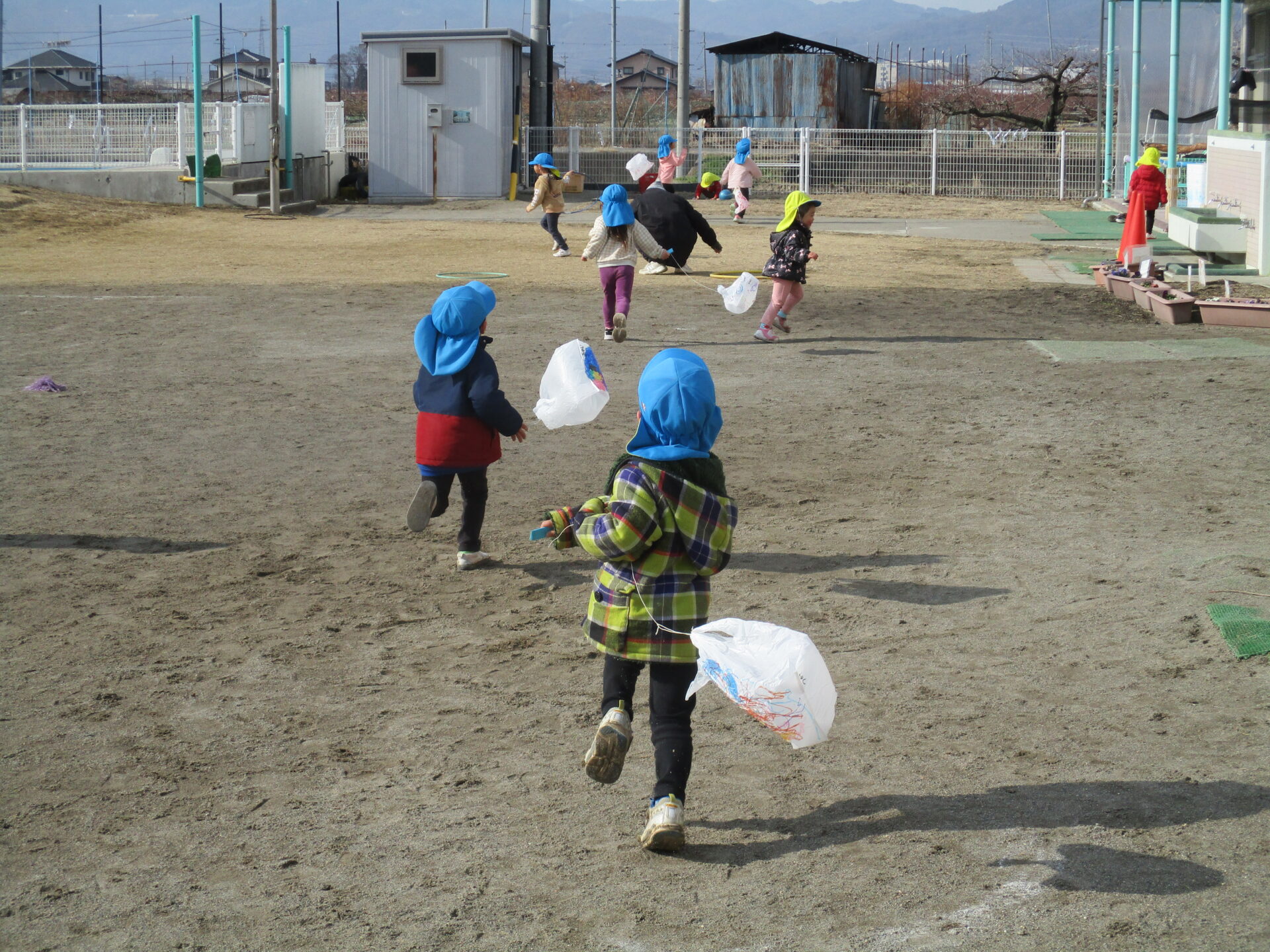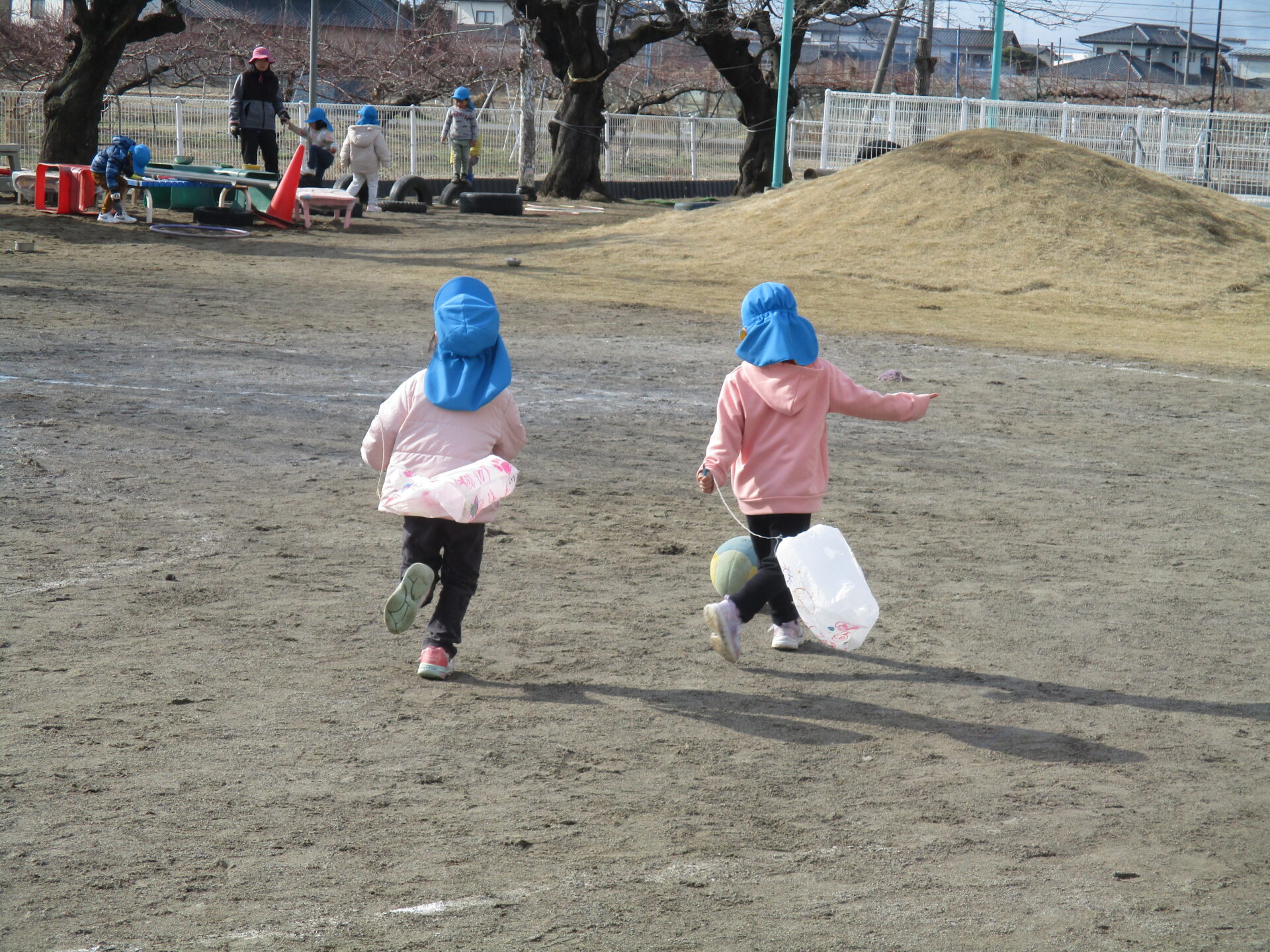 ・寒い季節でもたくさん戸外で遊んでほしい。