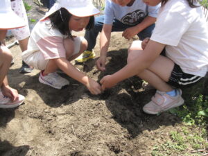 話を聞いて、早速苗を植えていきます。慎重に慎重に植えていきます。