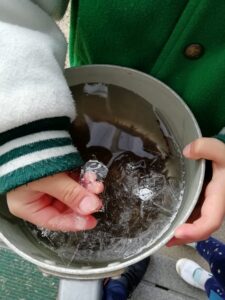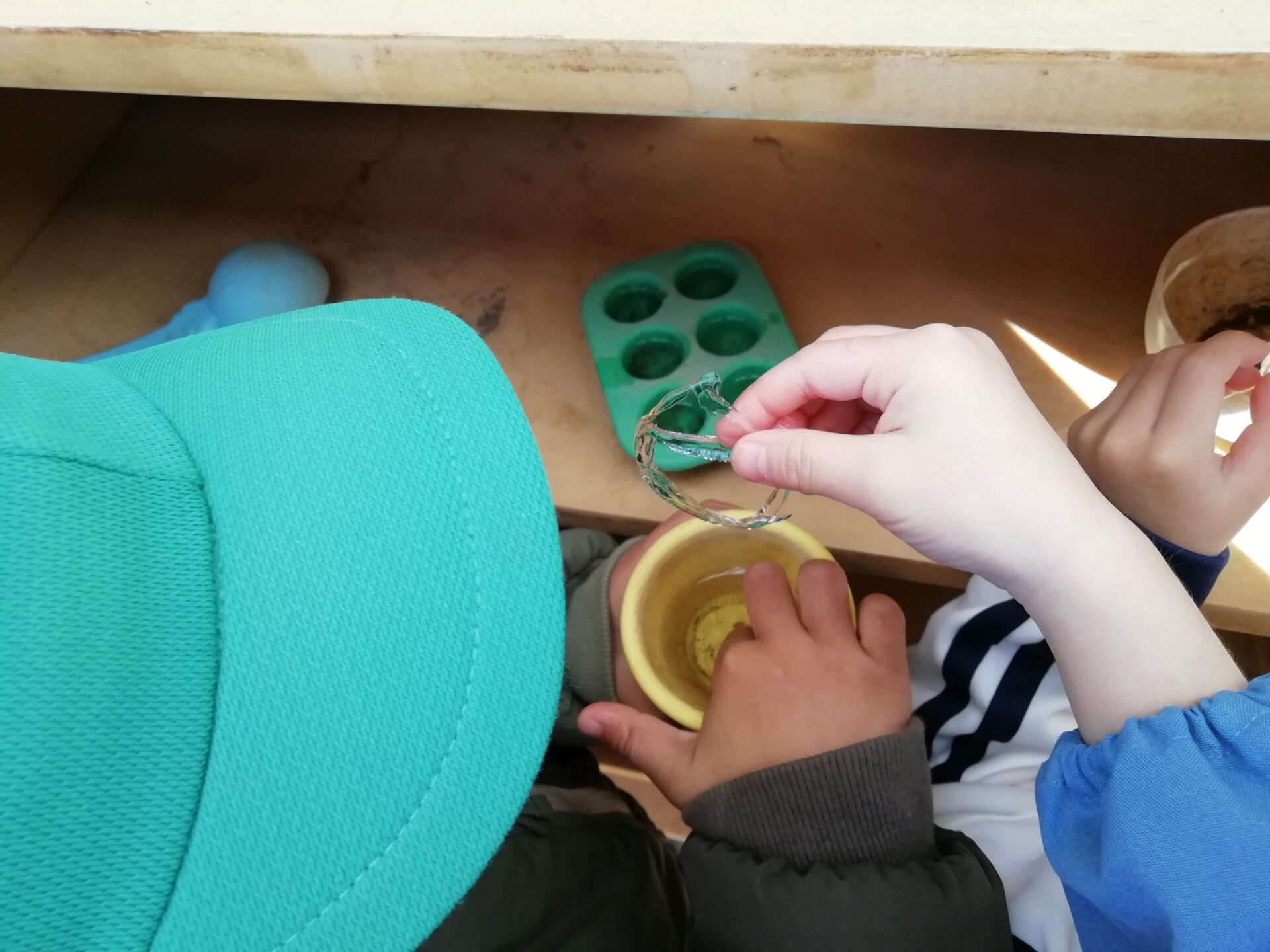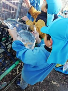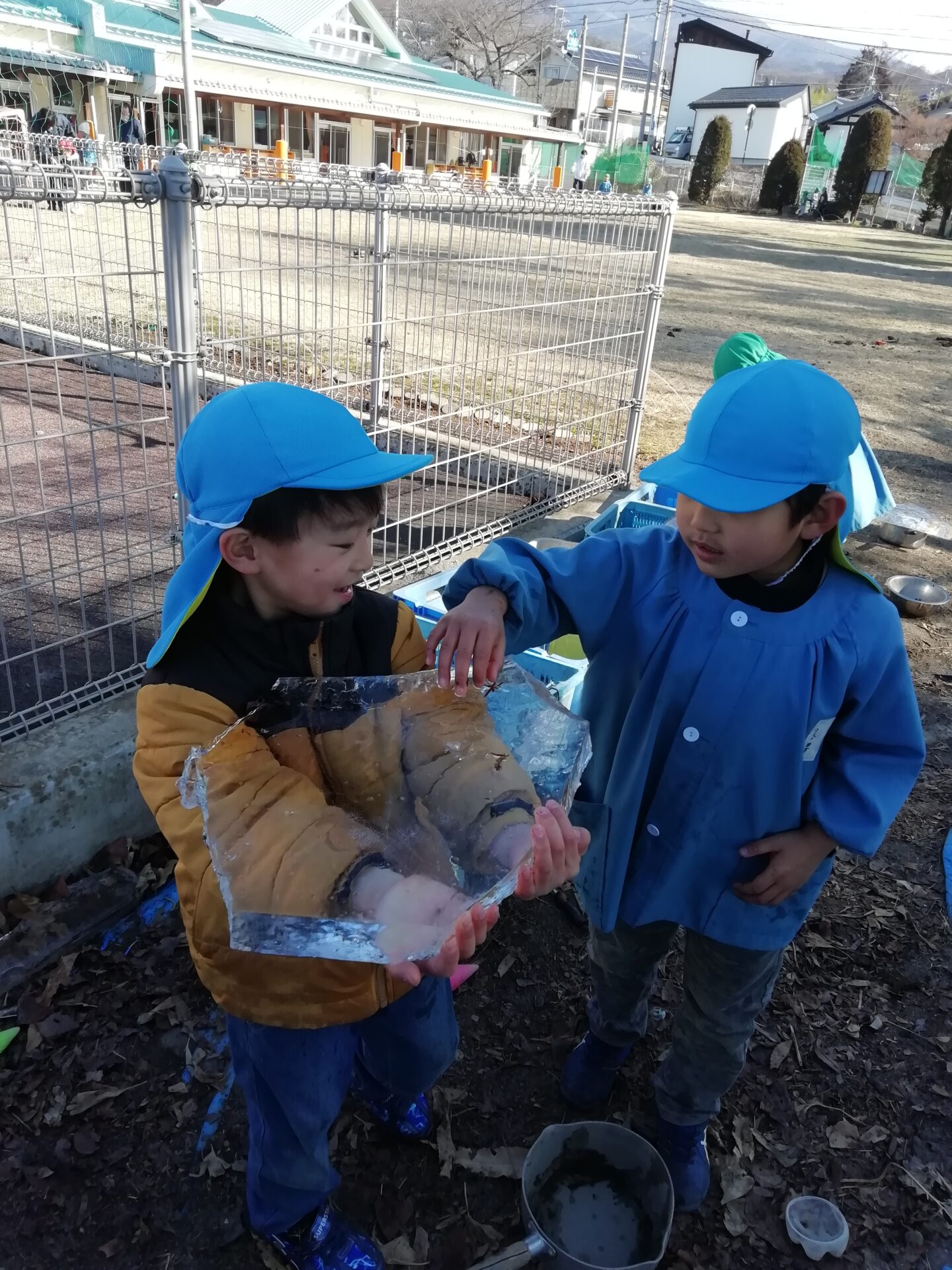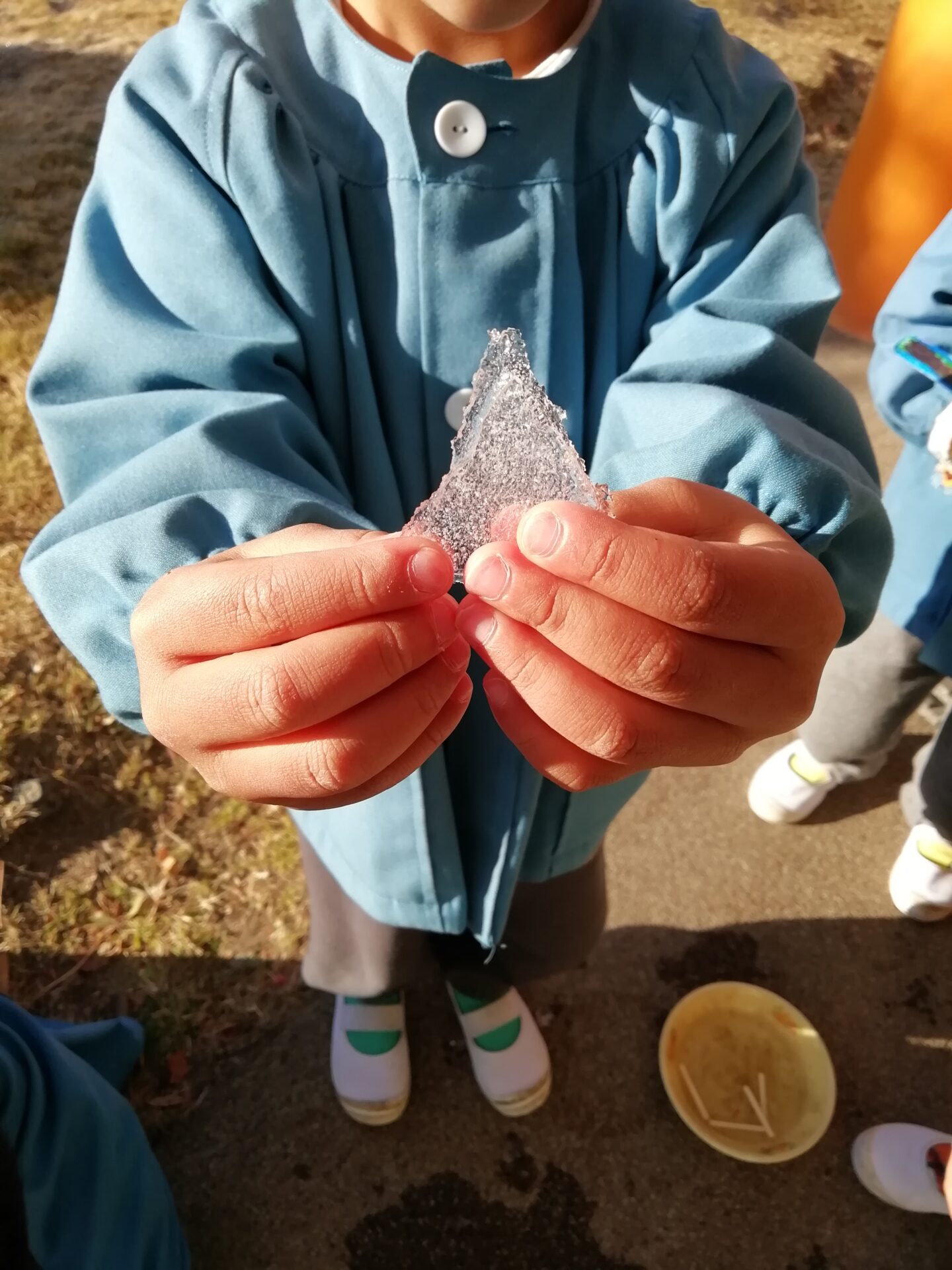 身近な自然(季節)の変化を感じながら〝寒いと水が凍る〟という発見に繋がった、そんな冬ならではの体験となりました。