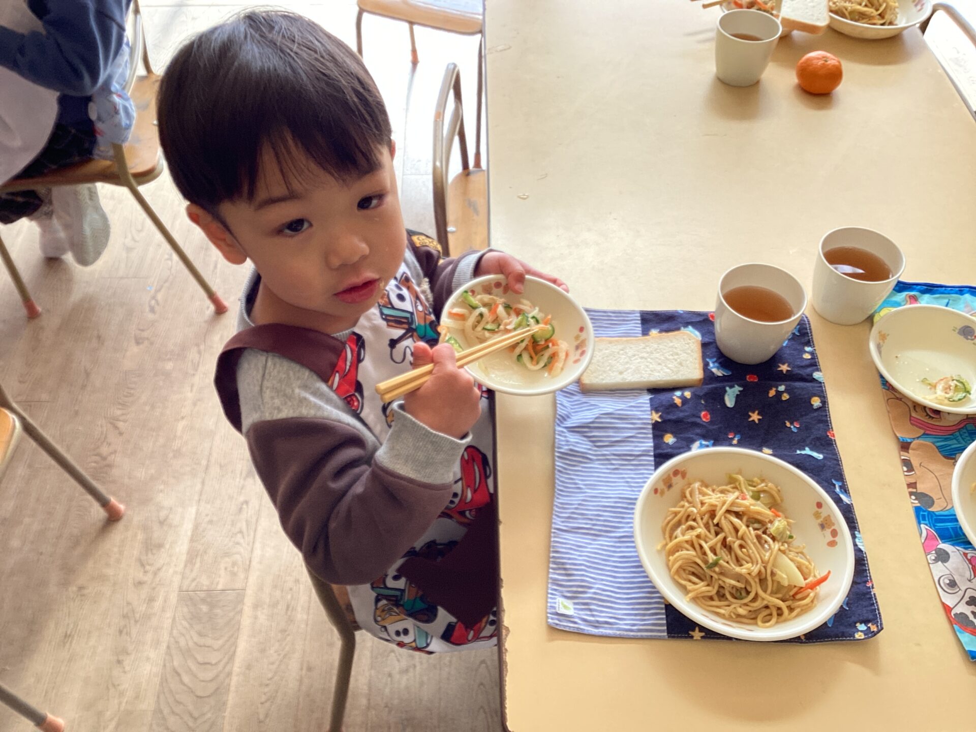 給食の先生がサラダにしてくれました。シャキシャキしてて美味しい!