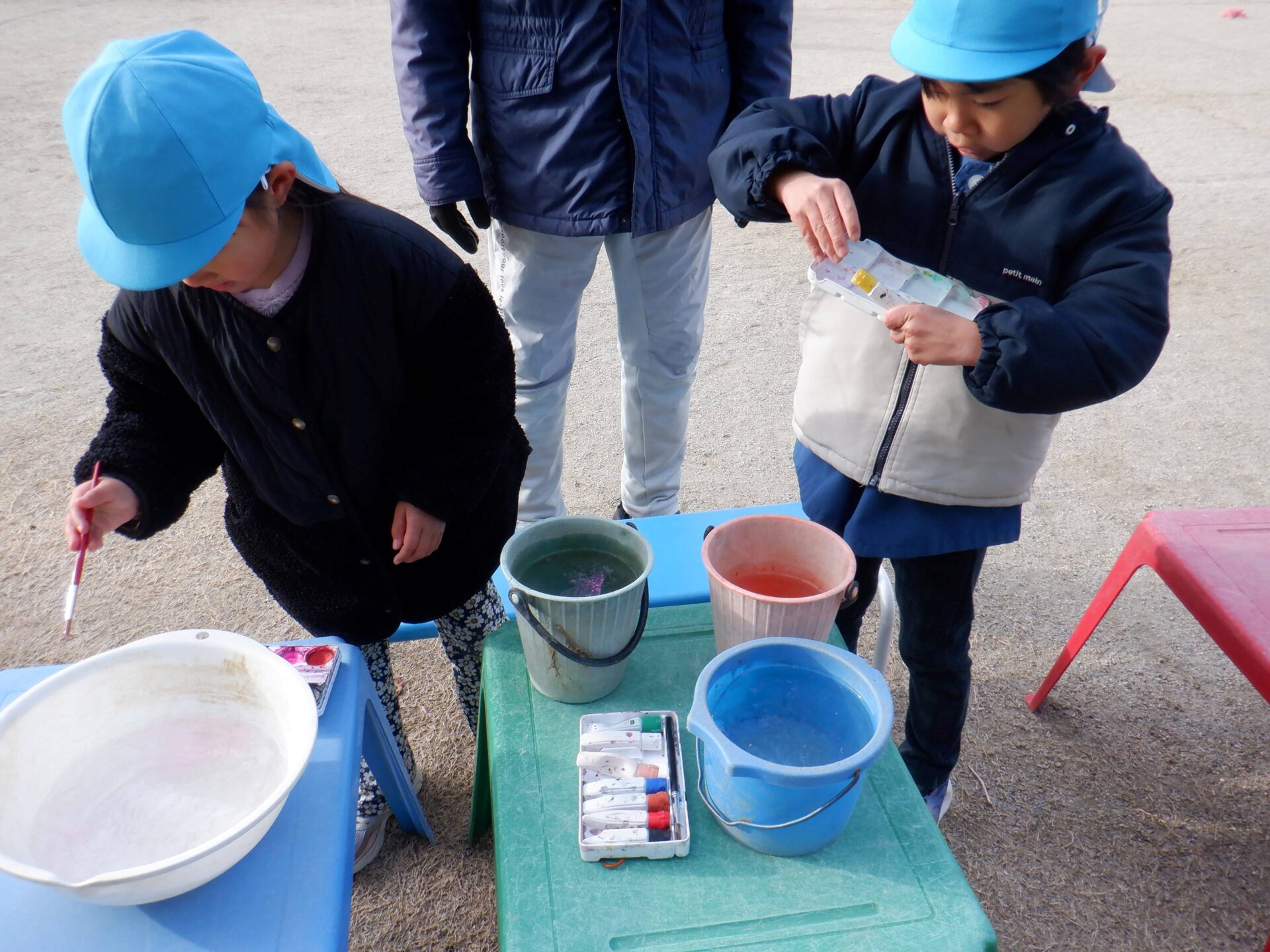 以前から「氷を作って絵の具で顔を書いてみたい!」と言って氷づくりを行っていた年長児。