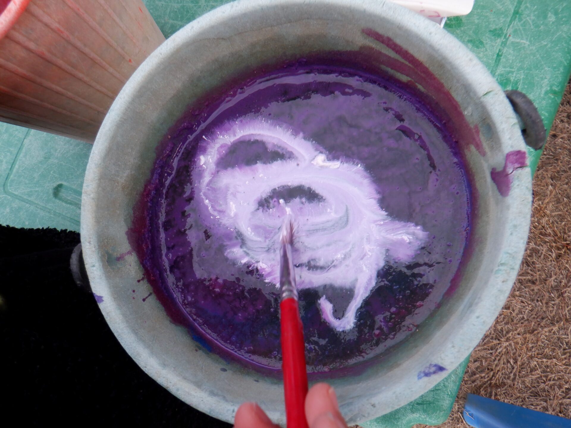 濃い色の上から白を付けてみると…「なにこれ~広がった!きれい~!」
