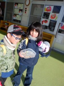登園してきた子たちも氷ができているかすぐにチェックです!