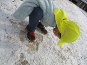 「あしあとがついたよ!」「Aちゃんのブーツのあとだ!」