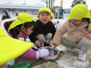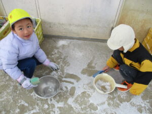 集める子、混ぜる子、みんなで役割分担をして楽しみました。