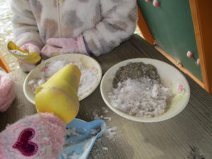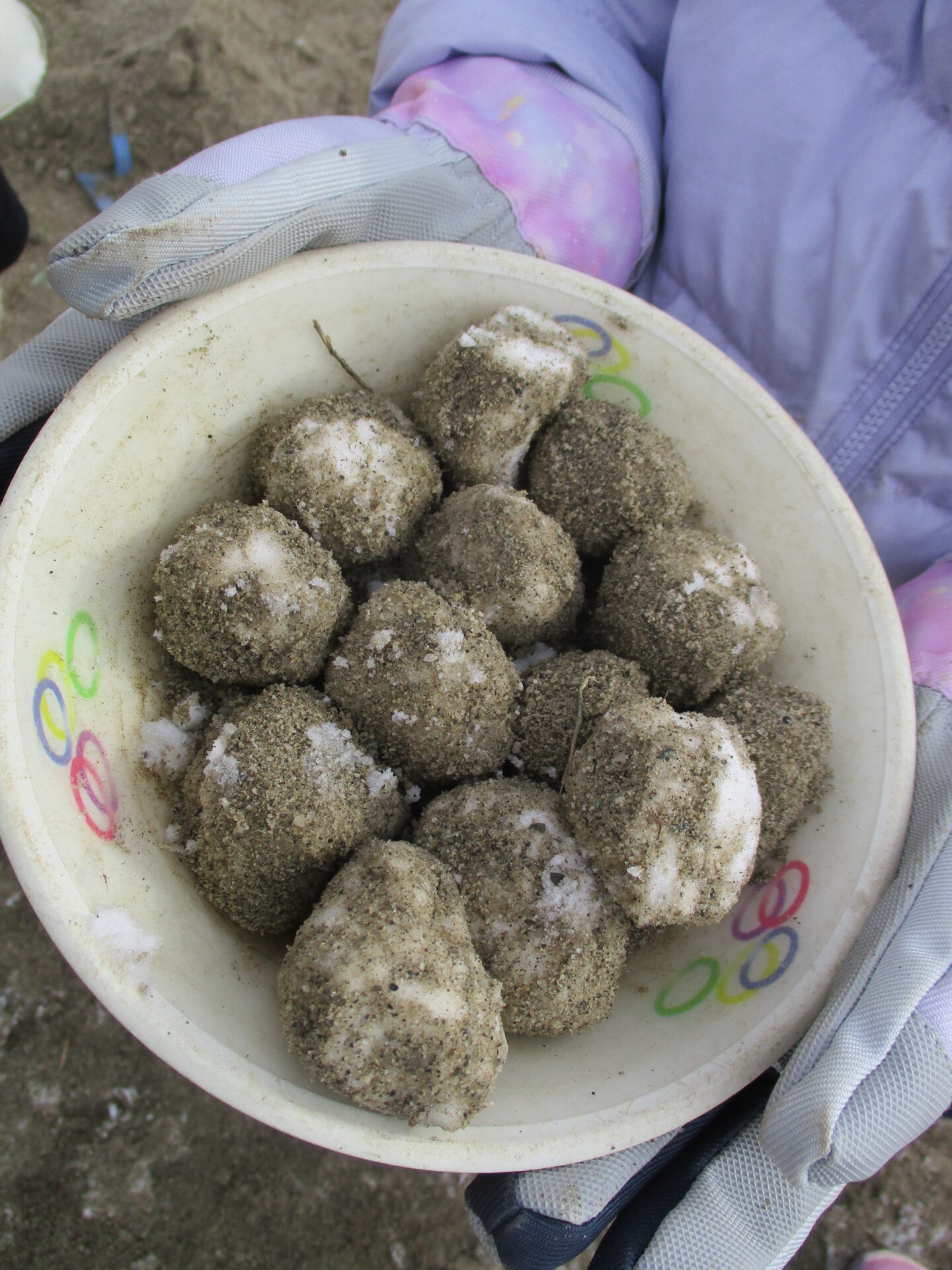 砂を少なくすることで雪がかたまりおだんごになりました!