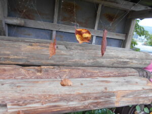 目的地の神社では…大きなくもの巣を発見!