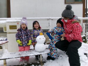 園庭では未満児組の子ども達も可愛らしい雪だるまを作りました♪