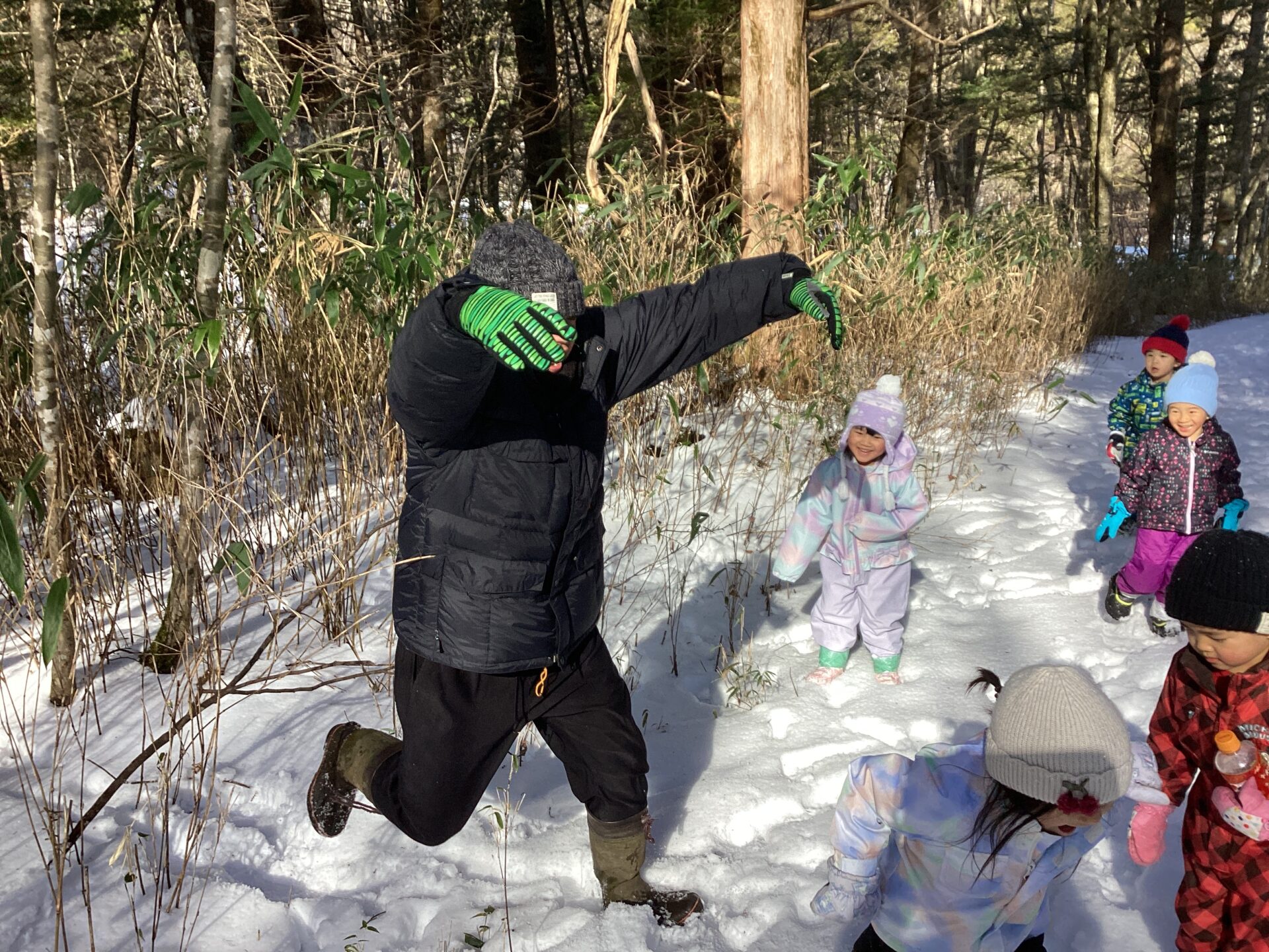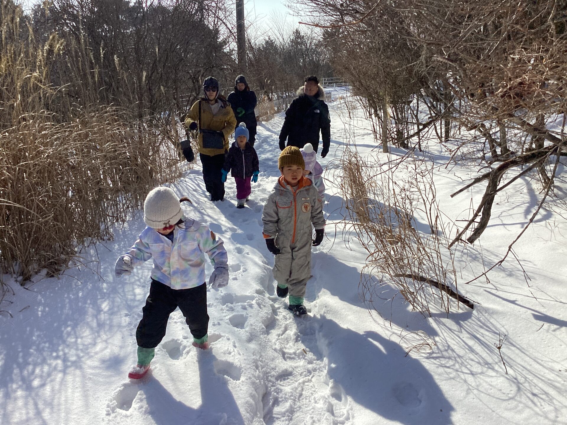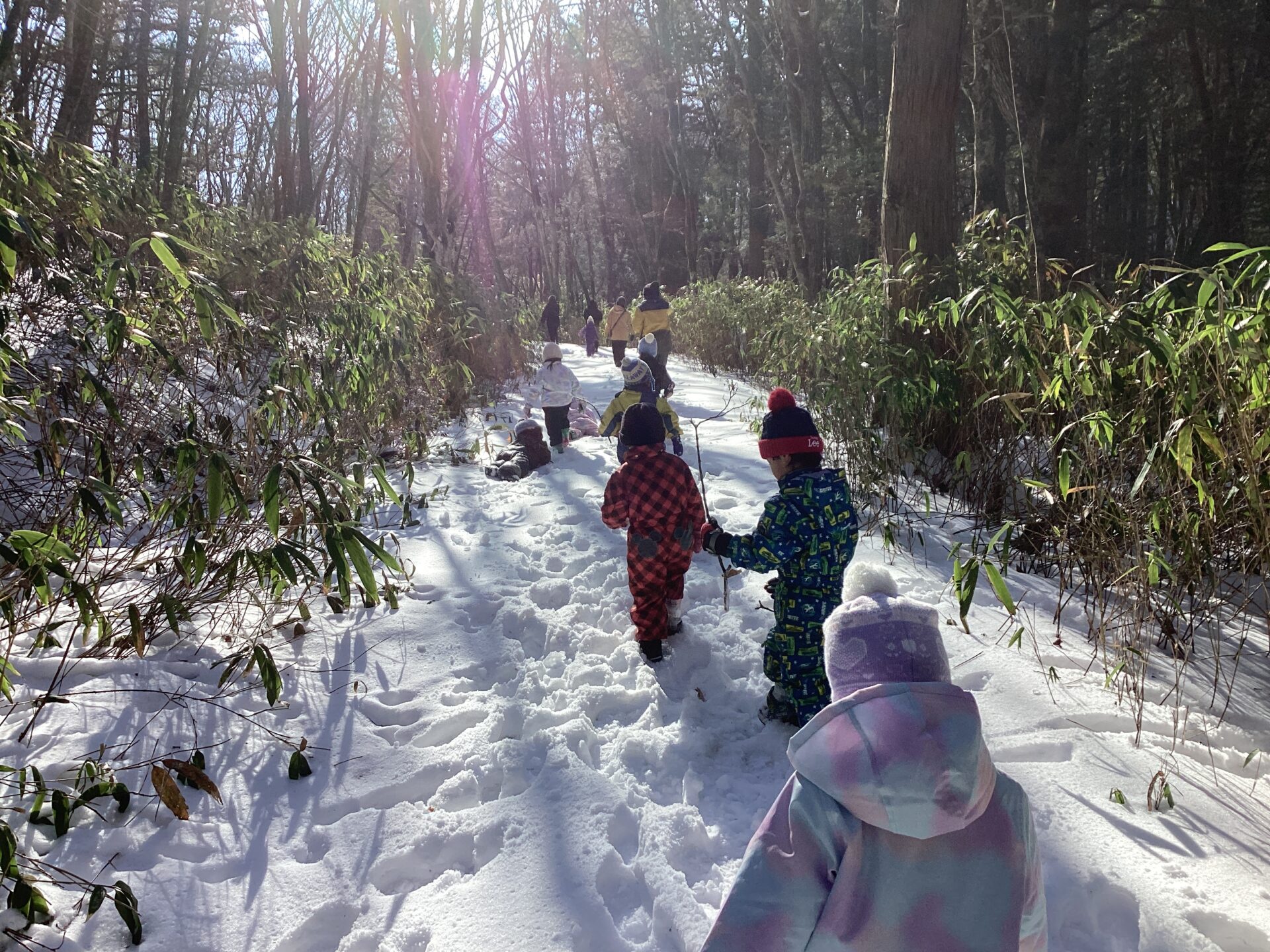 積雪で歩きにくい道でしたが、子ども達は元気に歩きます。