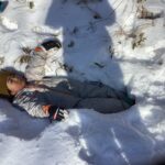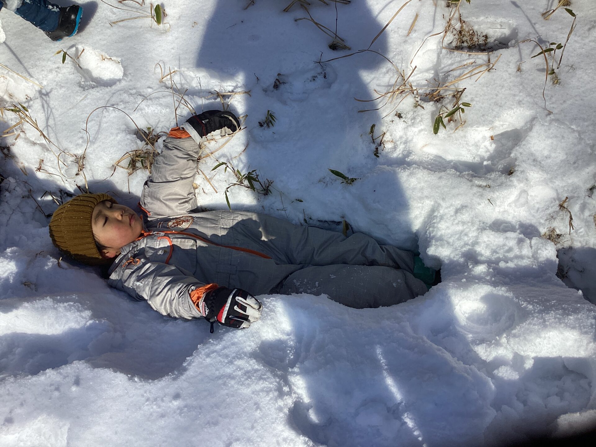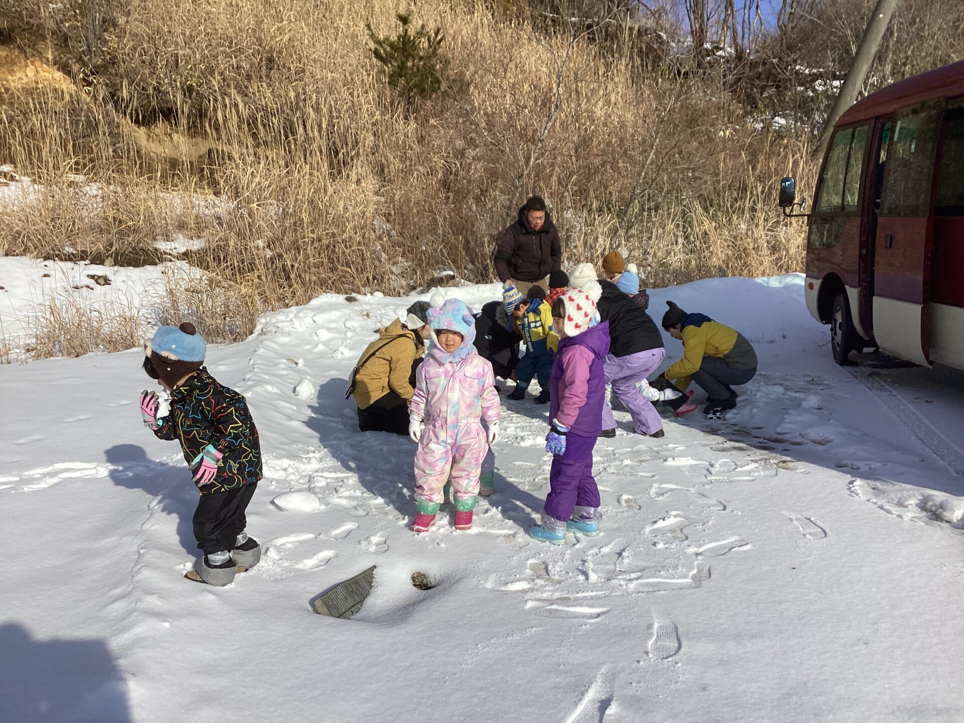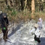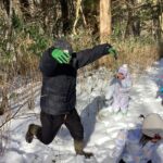 広い場所に出たことで更にテンションが上がる子ども達♪ここで雪玉を作ったり寝転んだりしながら遊び、少し休憩をしました。