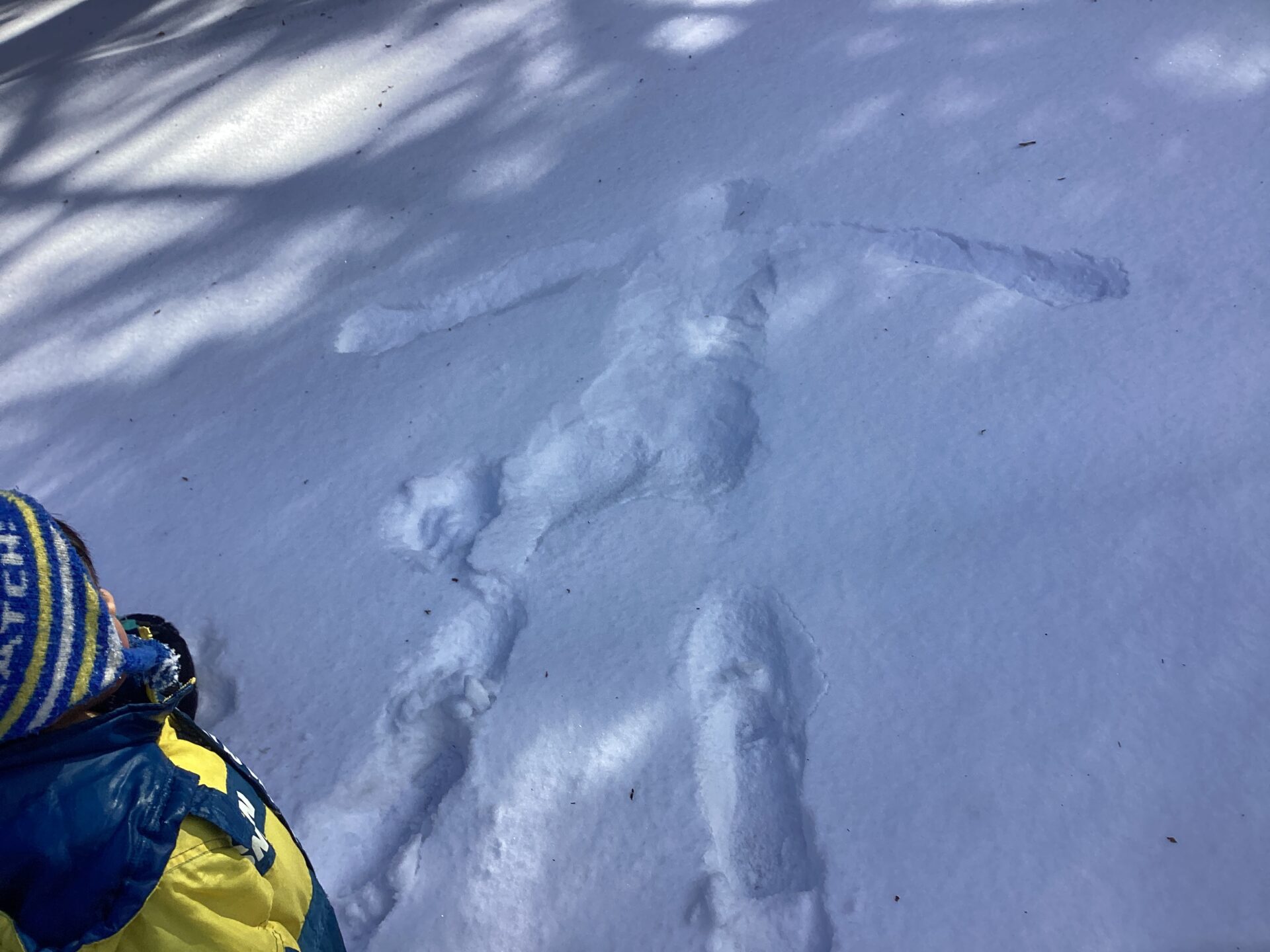 ナゾの雪男…?大男…?の倒れた跡が?!