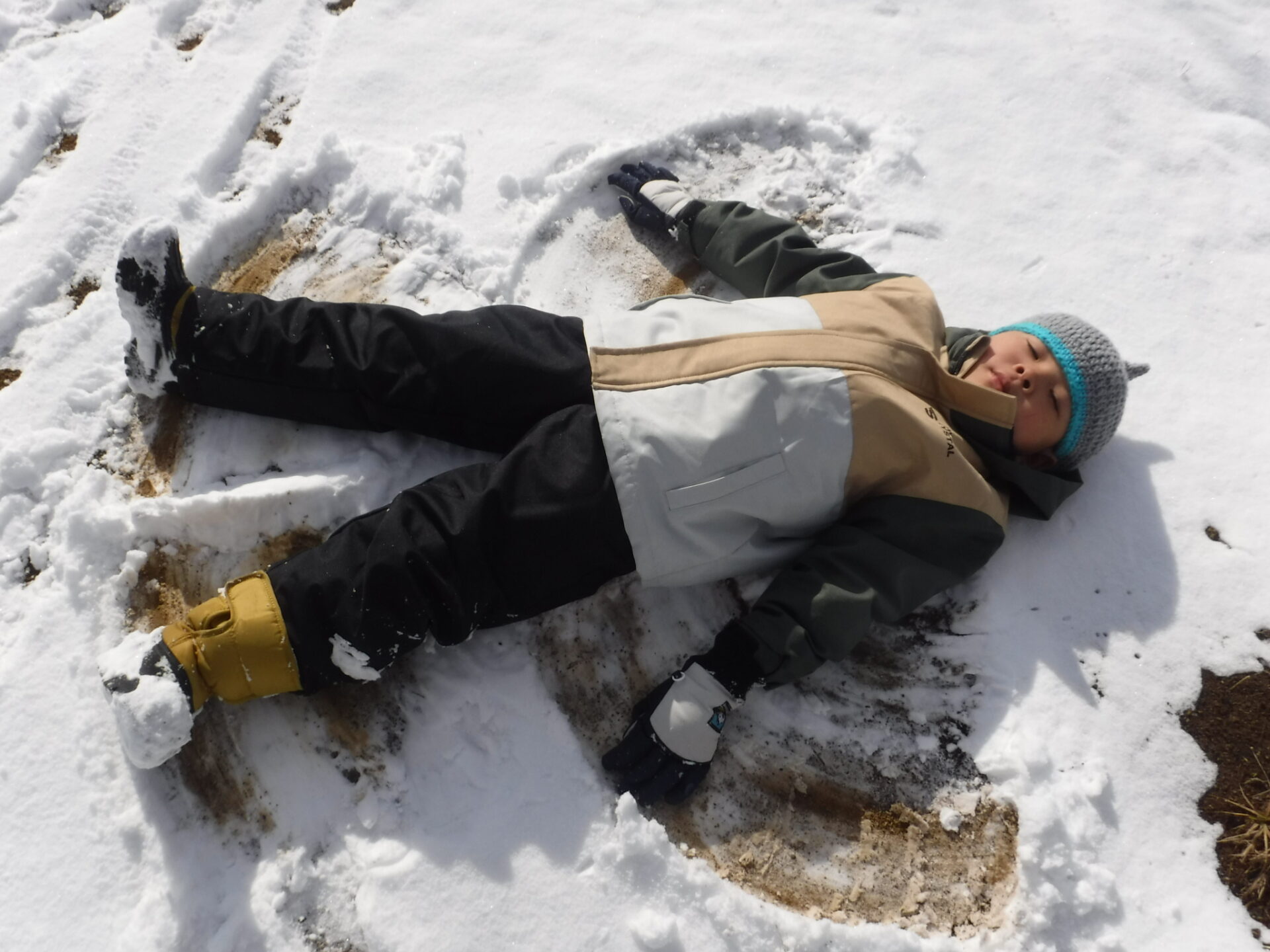 「雪の上に寝てみたら気持ち良さそうだと思って寝てみたんだ。それでね、手と足を動かしたら…。」
