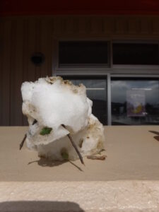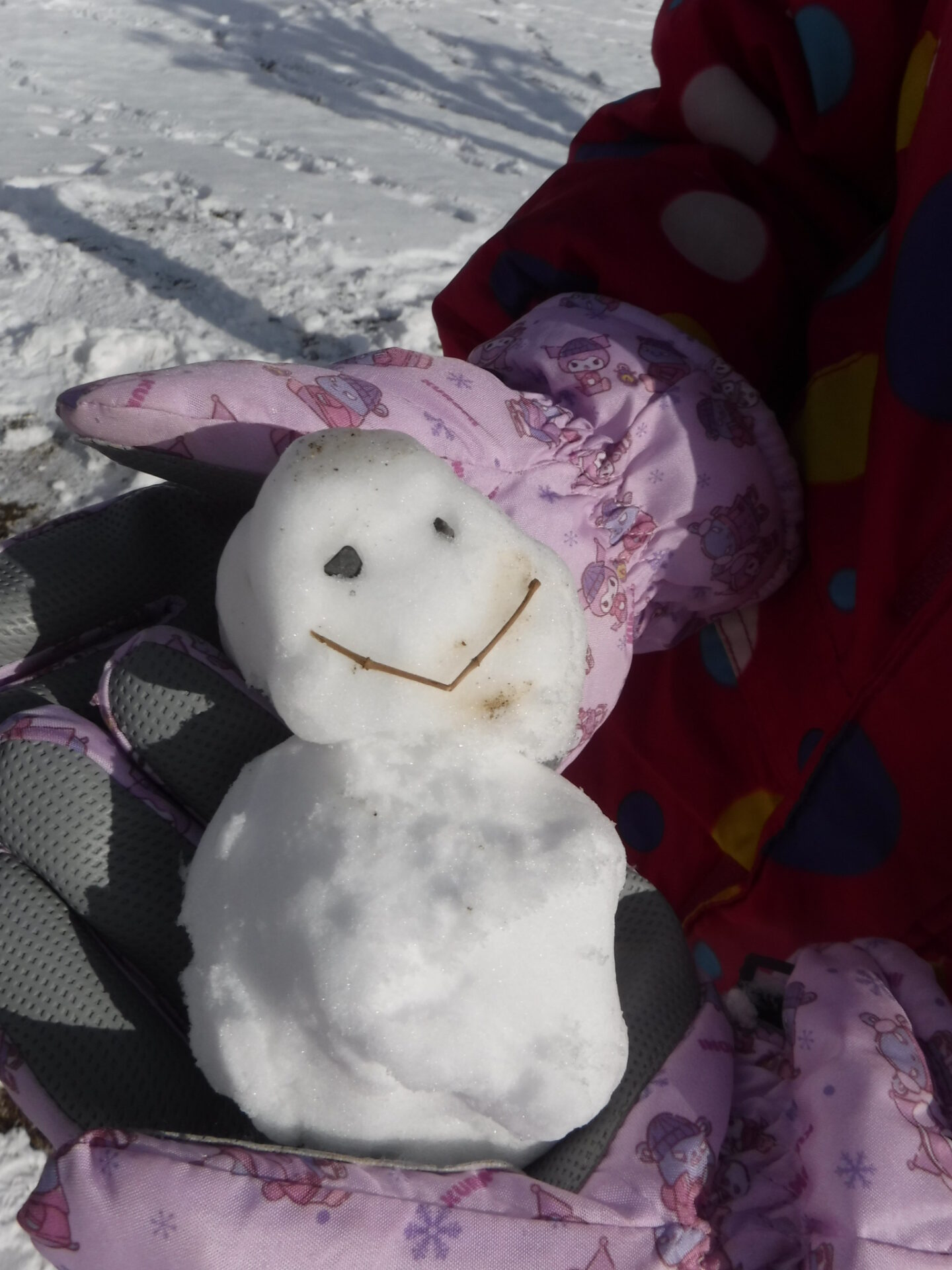 力を入れてギュッと丸めたのにどうして溶けちゃうんだろう?おひさまが当たる所に置いたからなのかな?今度作るときは寒い所に置いて溶けないようにしよう!