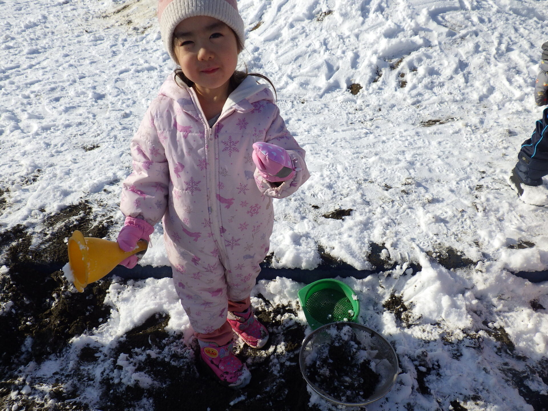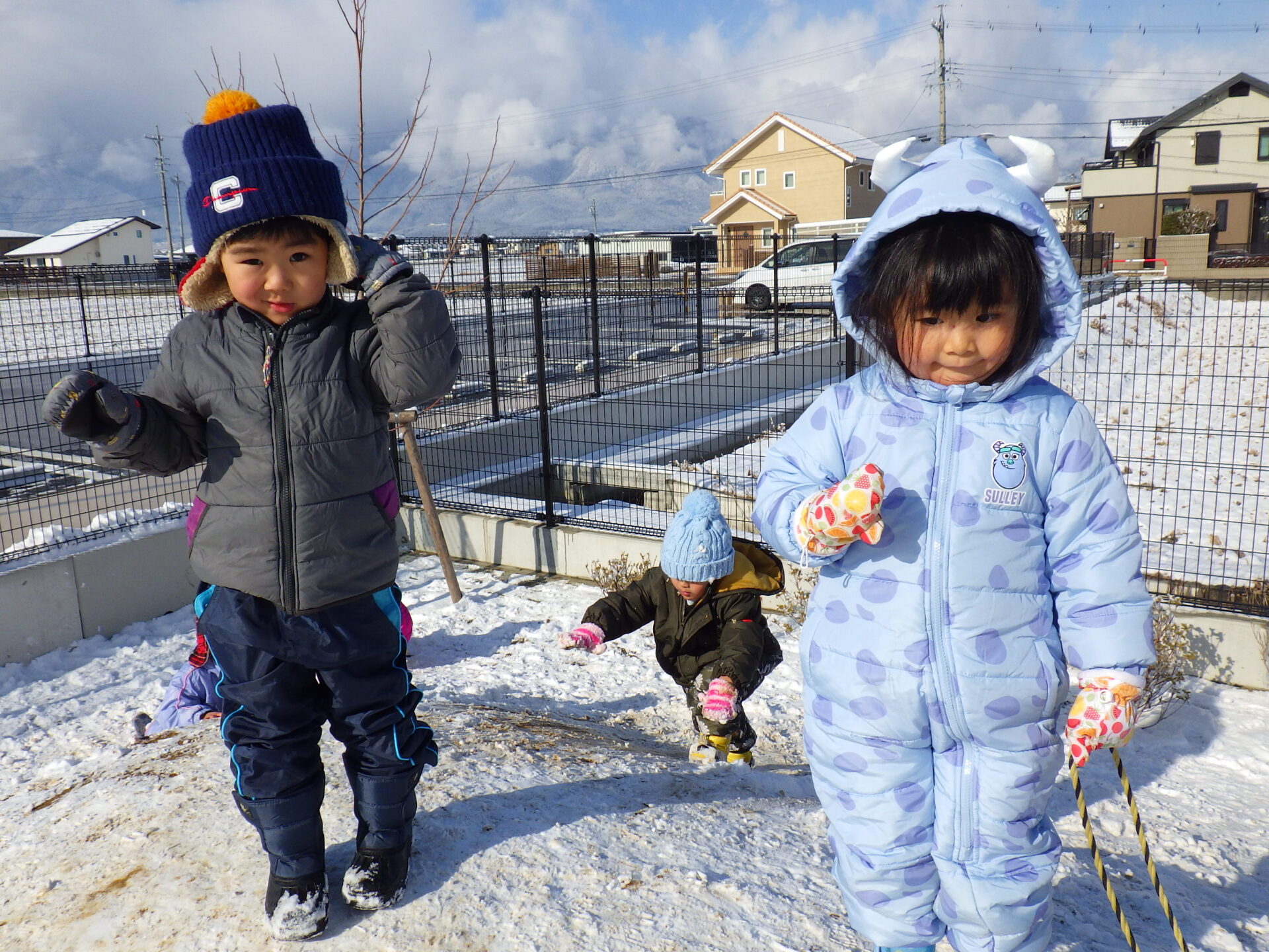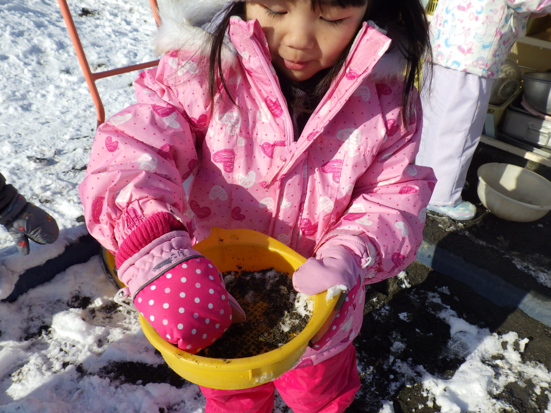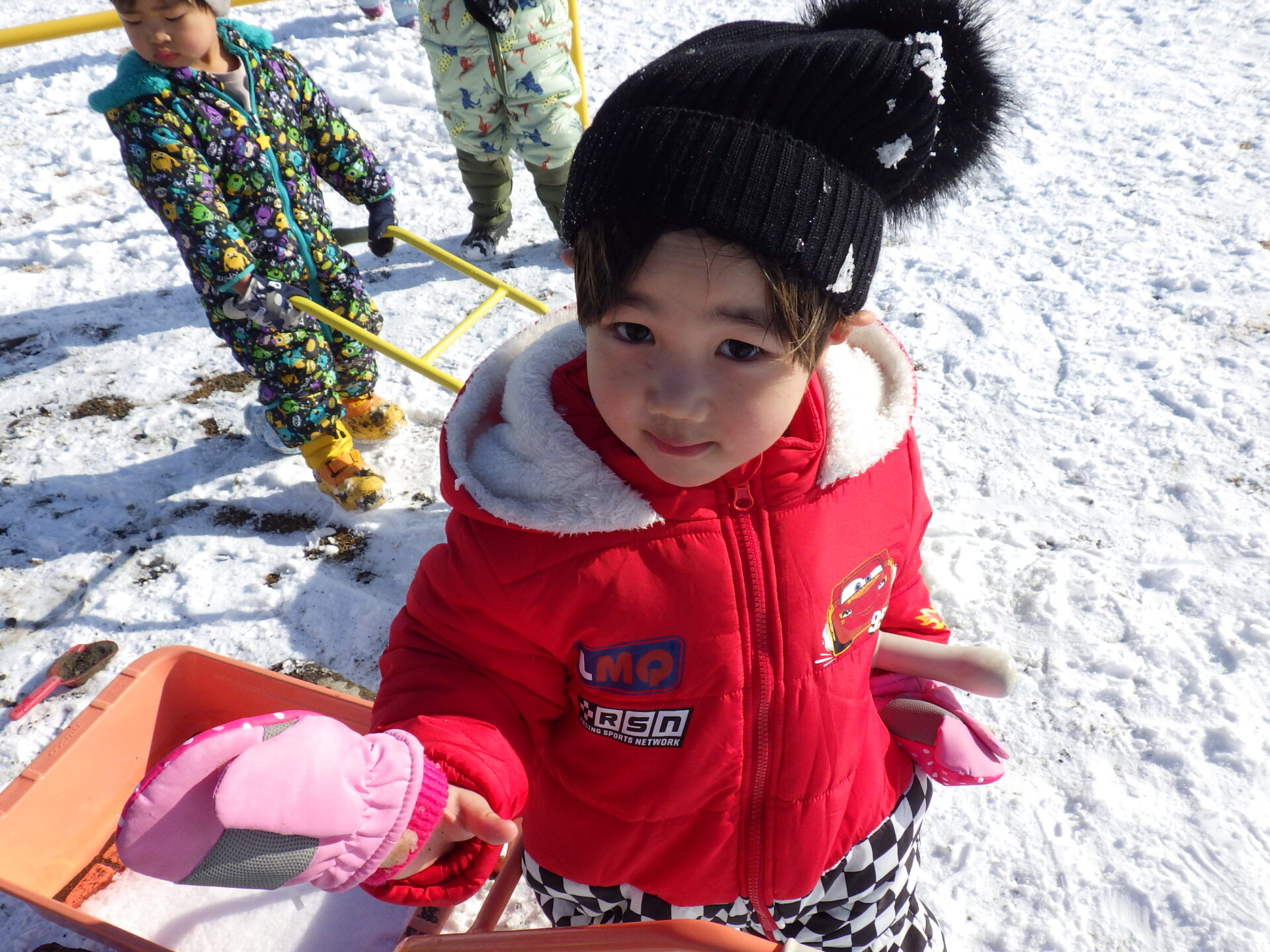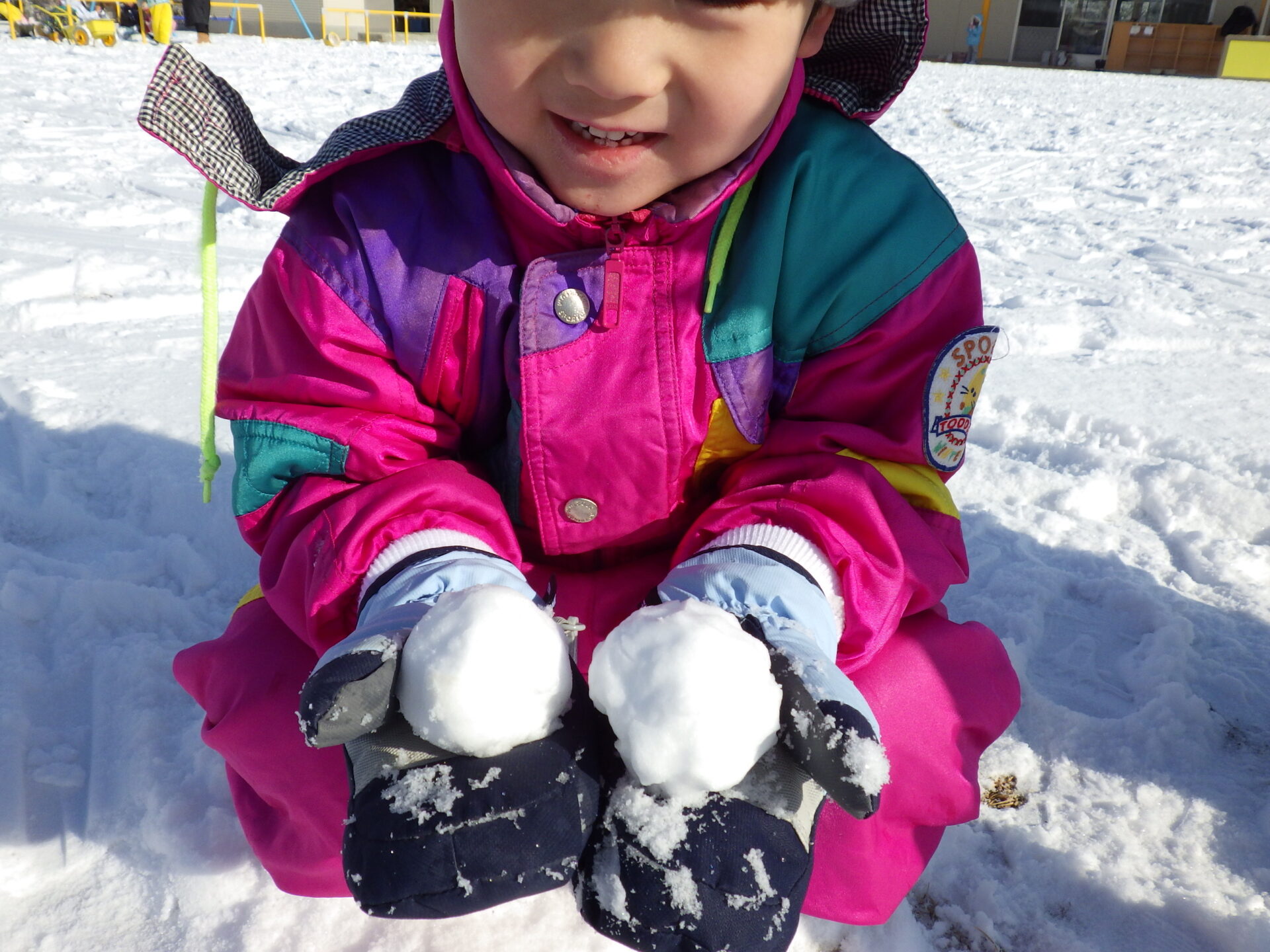 「雪 つめたいね〜」 「みてみて!雪集めたよ〜!」