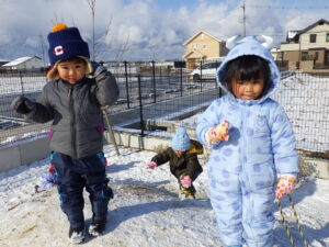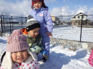 また、雪遊びだけでなく、様々な遊びを通して友達と一緒に遊ぶ楽しさや、力を合わせて遊ぶことの喜びも味わって欲しいと思います。