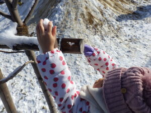 雪を集めて、丸めて、たくさん触れながら遊びます。