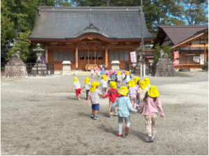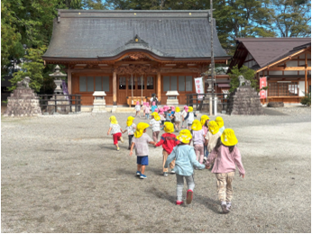 運動会も終わり、みんなで近くの神社までのんびりお散歩に出かけました。