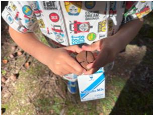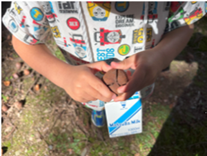 ・いつもと違う場所で新しい自然物を発見し、自然物や喜びを友だちや保育者と共有する楽しさに少しずつ気づくことができたのではないかと思います。
