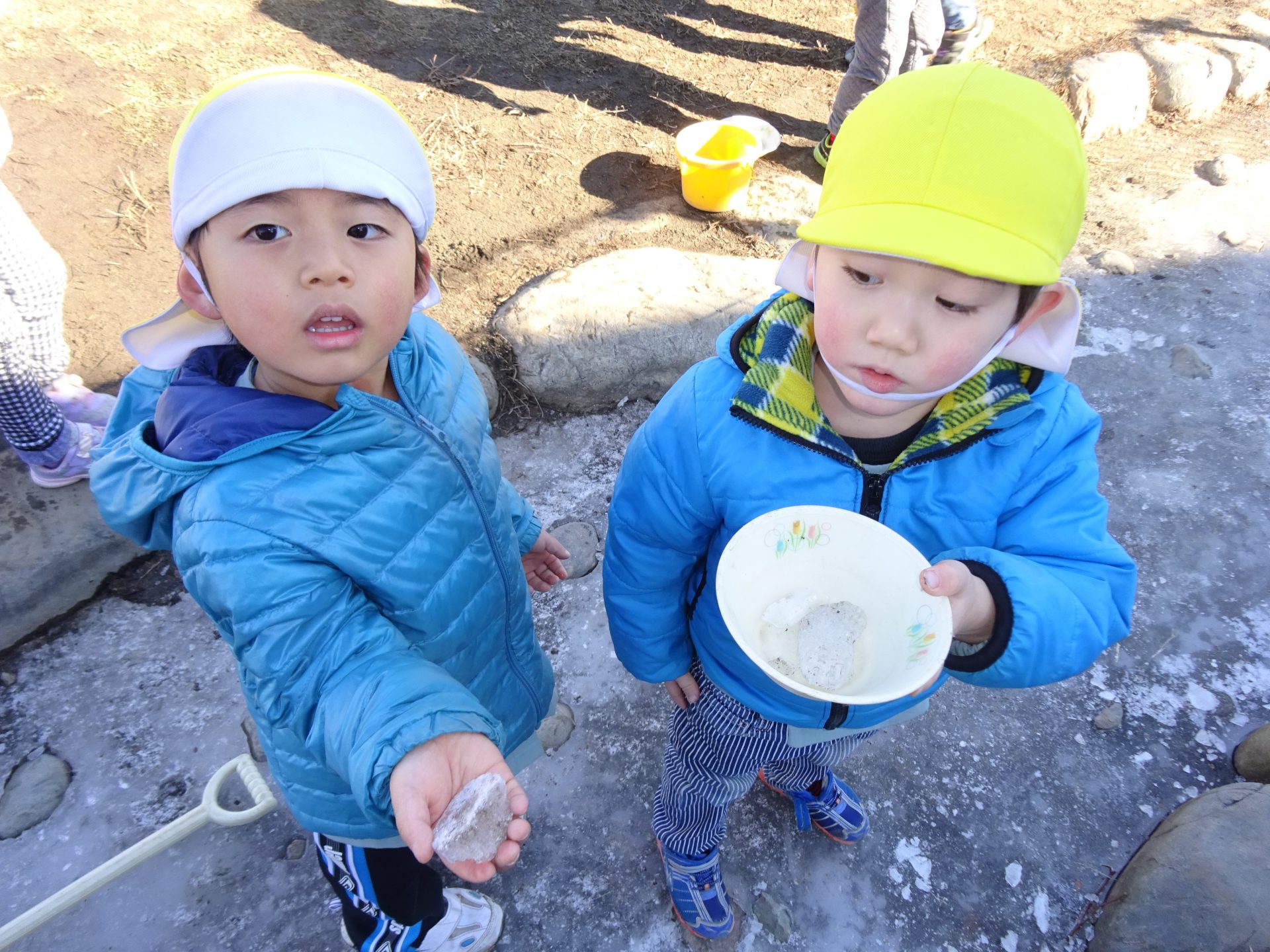 だんだん寒くなると初めは薄かった氷も厚くなりなかなか取り出せないことが分かりました。そんな中、上手に取れた氷はまるで宝物です。