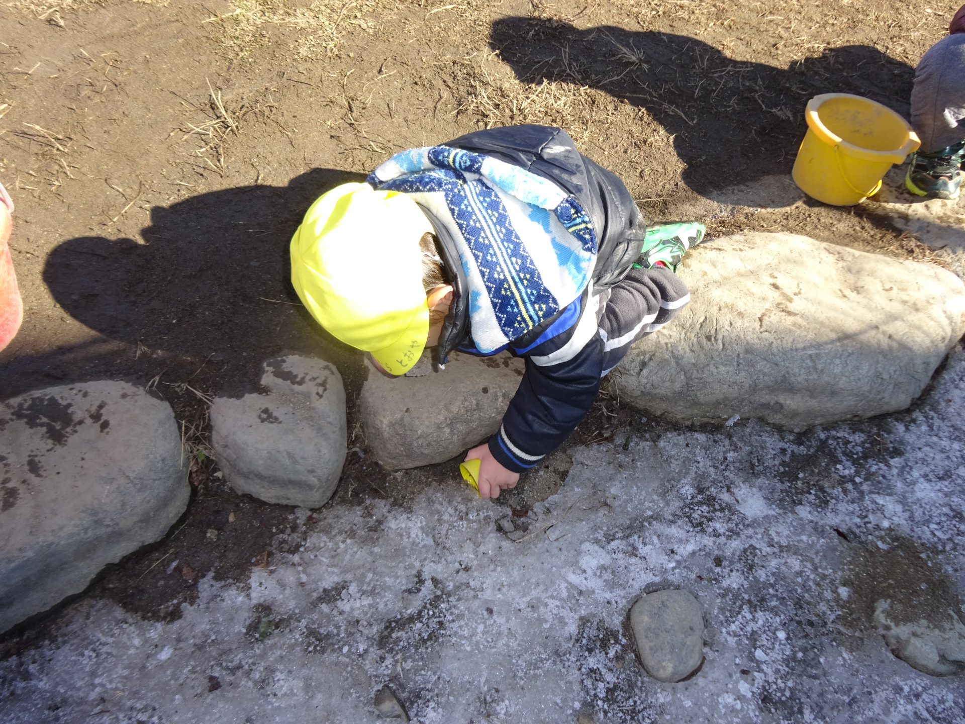 氷はその場所だけでなく砂場などへ運んで遊んだりします。
