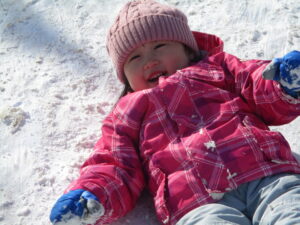 たくさん雪が降った次の日、園庭に積もった雪に大喜びの子ども達。
