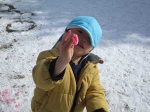 友達と関わりながら、冬の自然にたくさん触れて遊んでいきたいと思います。
