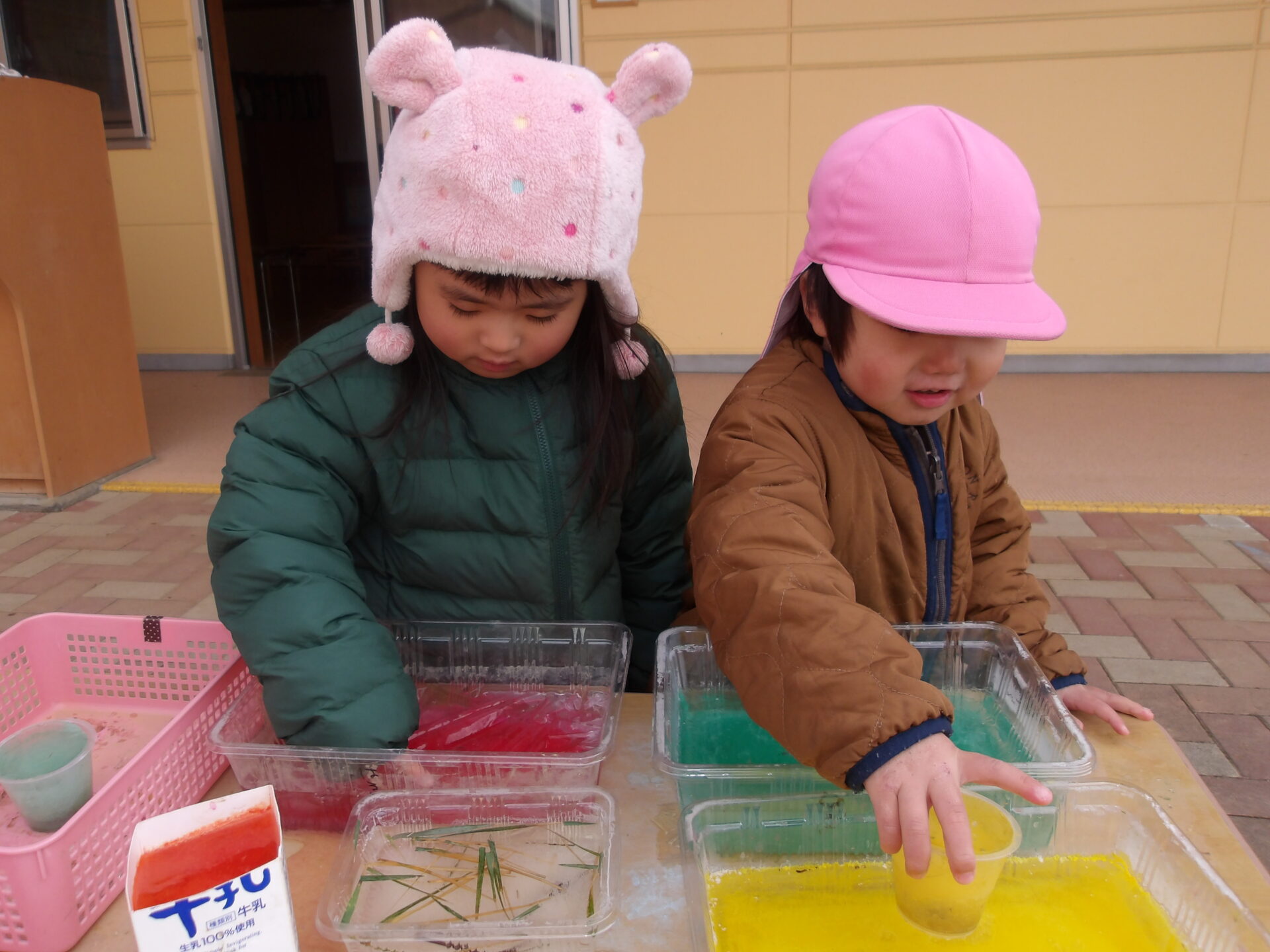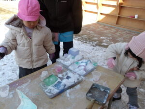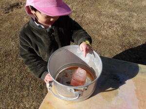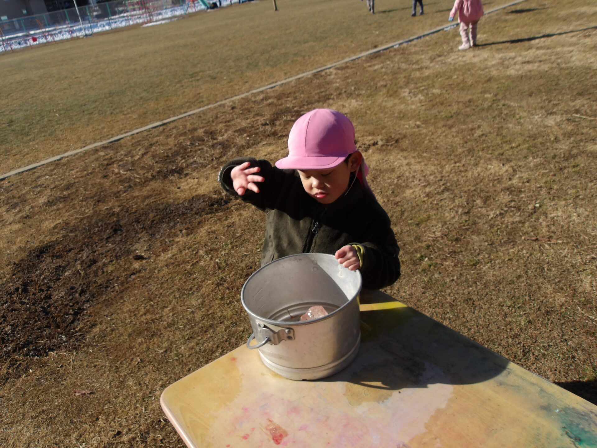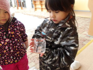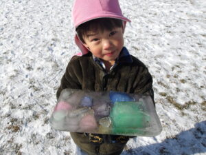 冬の寒さを感じながら、五感をフルに使い、氷の不思議さや変化に心を寄せ、驚きや発見をした時の子どもたちのキラキラした顔が印象的でした。