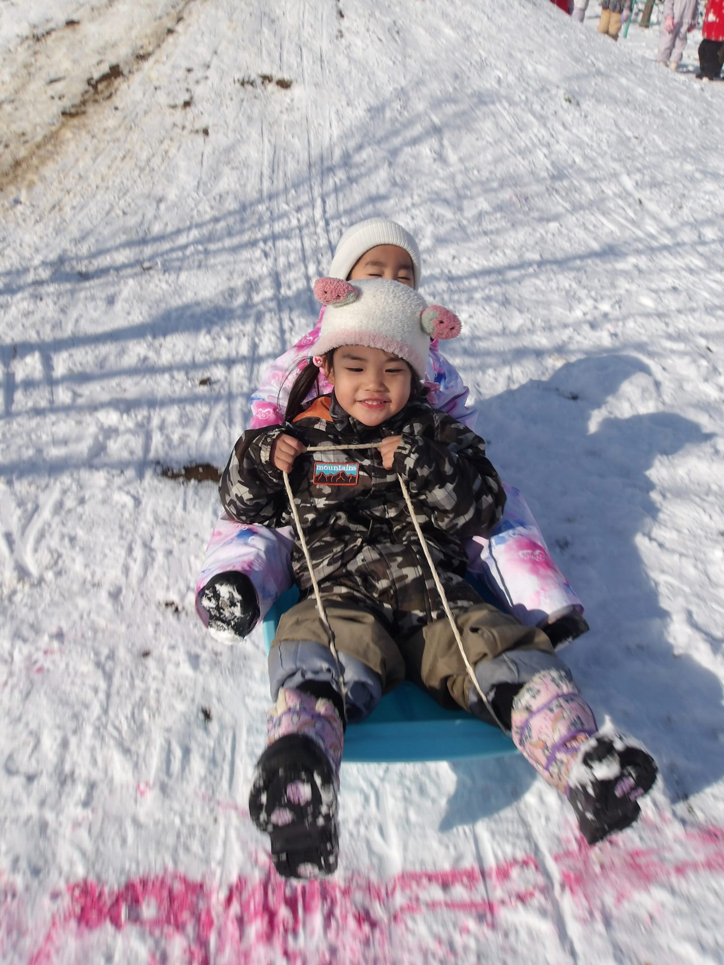 氷に雪をまぶして「お砂糖プリン作ってるのー」