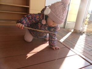 一人の気付きから遊びへと発展した。場面毎の驚きの声や成功した喜びの声、そして集中している無言の声に耳を傾け、心に寄り添った保育を目指していきたい。また、子どもの意欲や好奇心を大切に、楽しく一緒に過ごしていきたいと思う。