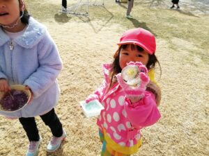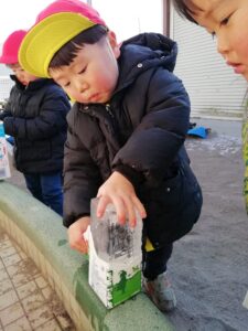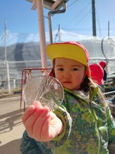保育園では寒いこの時期だからこそできる氷あそびを連日楽しんでいます。