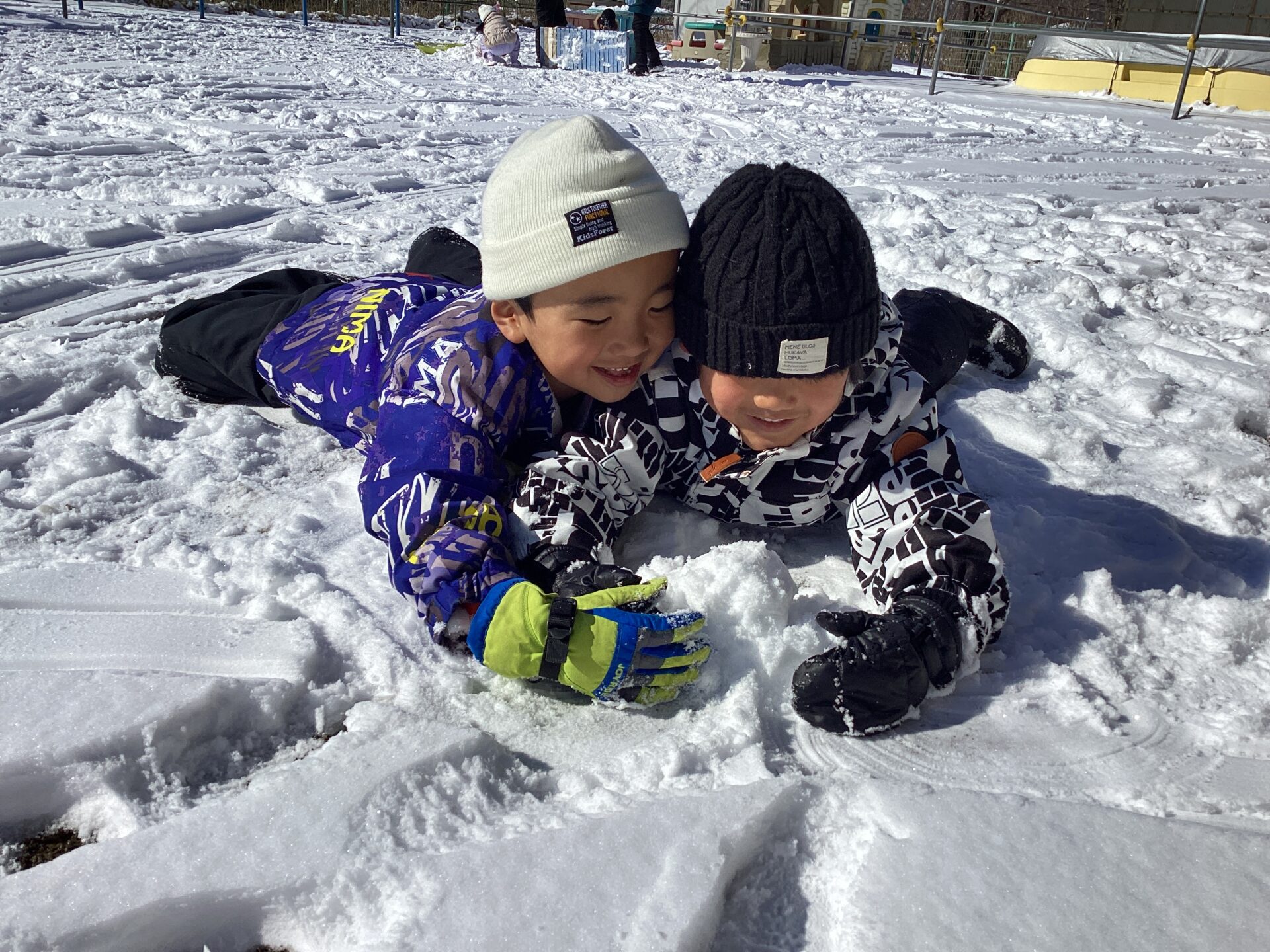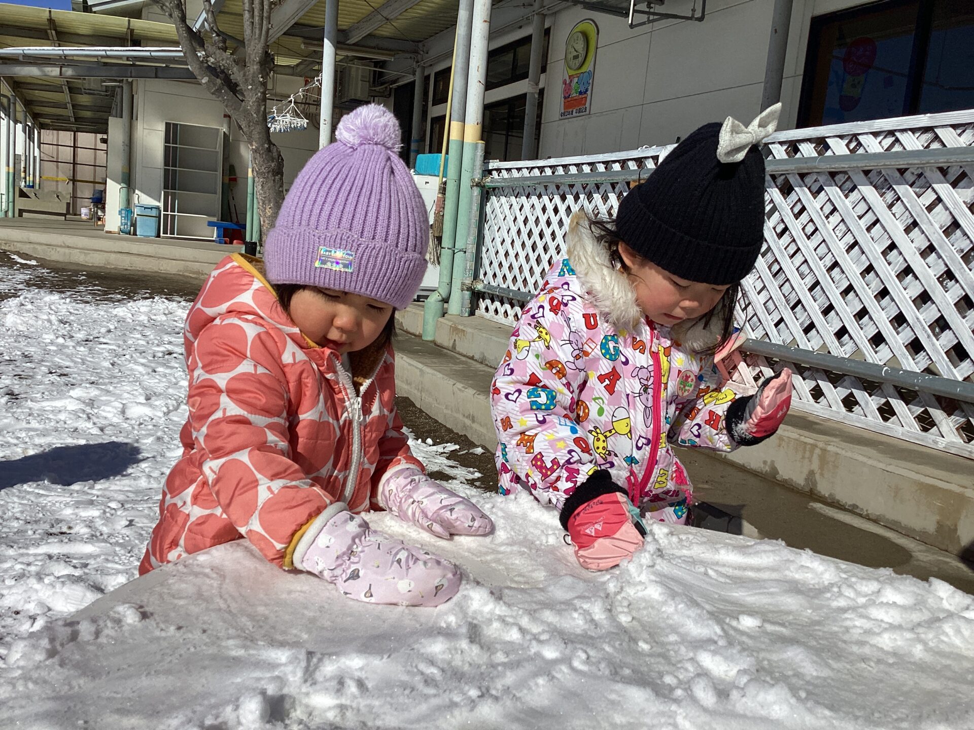 待望の雪が園庭に積り、子どもたちは大喜びです。