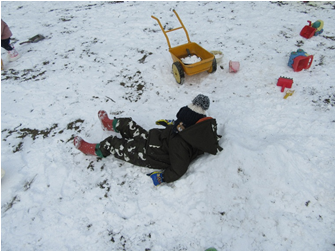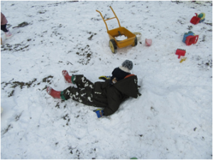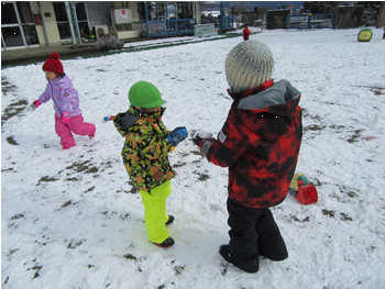 雪玉を作ったり、雪の上に寝てみたり、雪を運んだり・・・雪って面白い!雪遊び楽しいな!