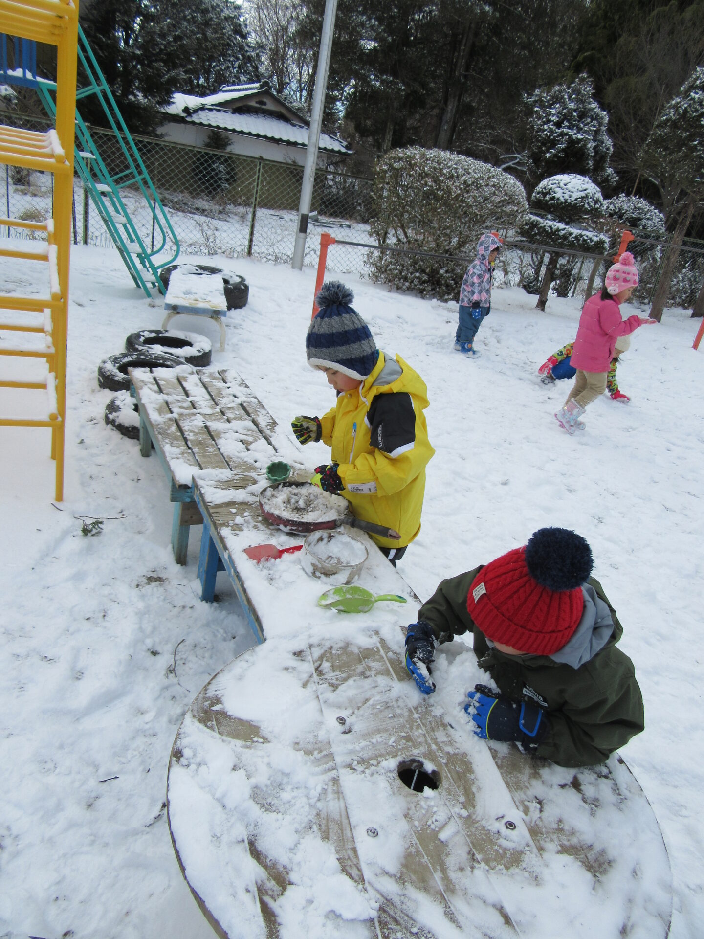 心待ちにしていた雪遊び。まずはお料理、そしてソリ遊び。さまざまな遊びが繰り広げられていきます。