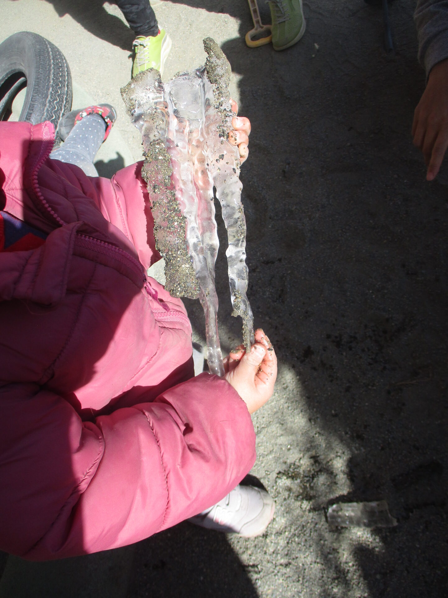 この日は大きく成長したつららを採ることに成功!!子どもたちのところに届くと・・・