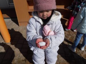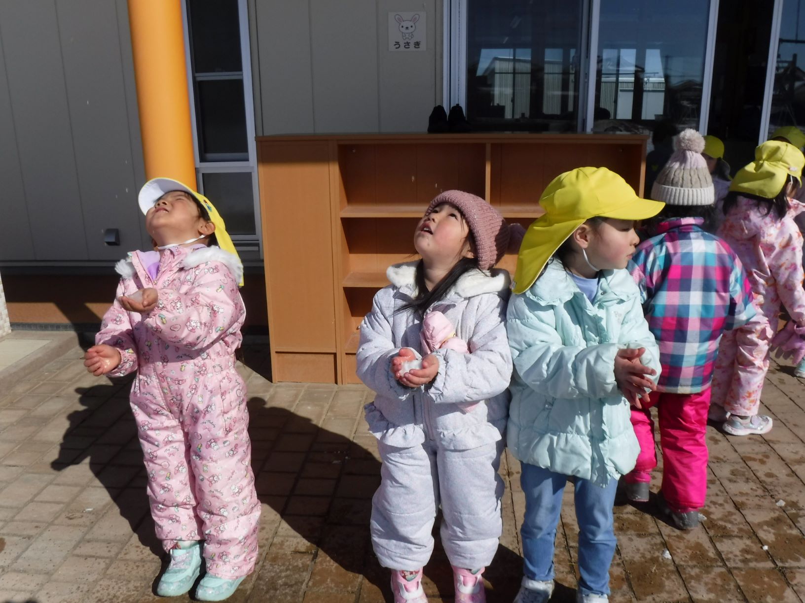 「雪とけるかな?」「とけた、とけた!!」「水になった!」