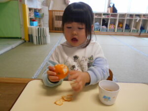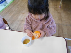 おやつでみかんが出ました。