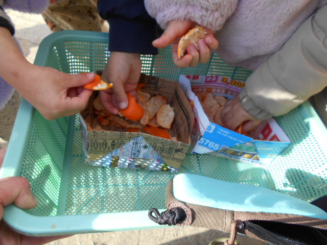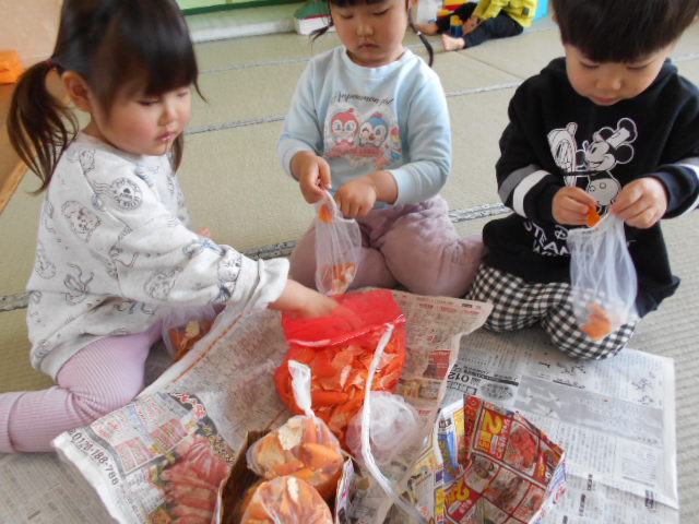 「温かいね」「みかんの匂いするね」子ども達の反応は様々。