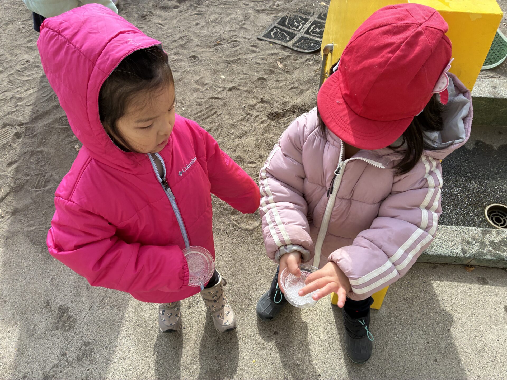 光に当てたり、友達の氷と見比べたりして楽しむ姿が見られました。