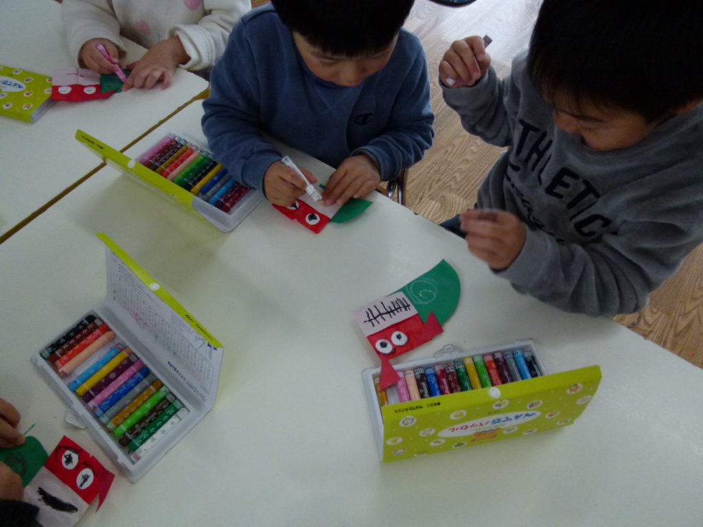 「僕の歯は白いから白にしよ!」どの子も自分好みの獅子舞を作ります。
