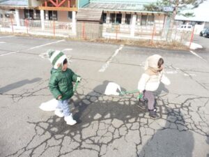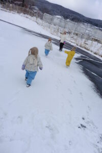 空気も冷たく、子どもたちも走って、「顔がつめたくなるよ」と言っていました。