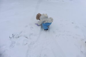 雪を持ってコロコロをしていると、雪玉ができてくること気が付き、とても大事にコロコロしていました。