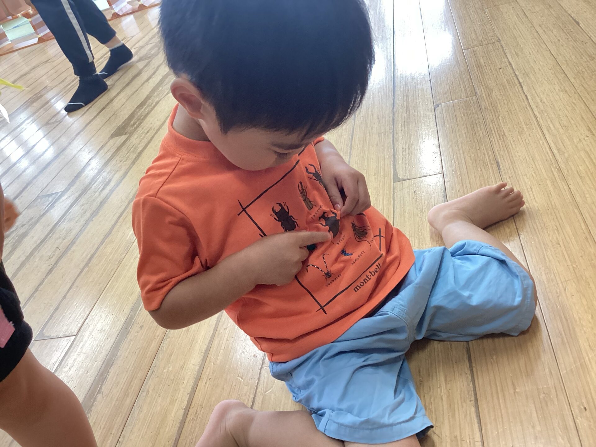 よーく見ているとふと気がついた。僕の服と同じ虫だ!と気づいて誇らしげ。