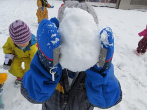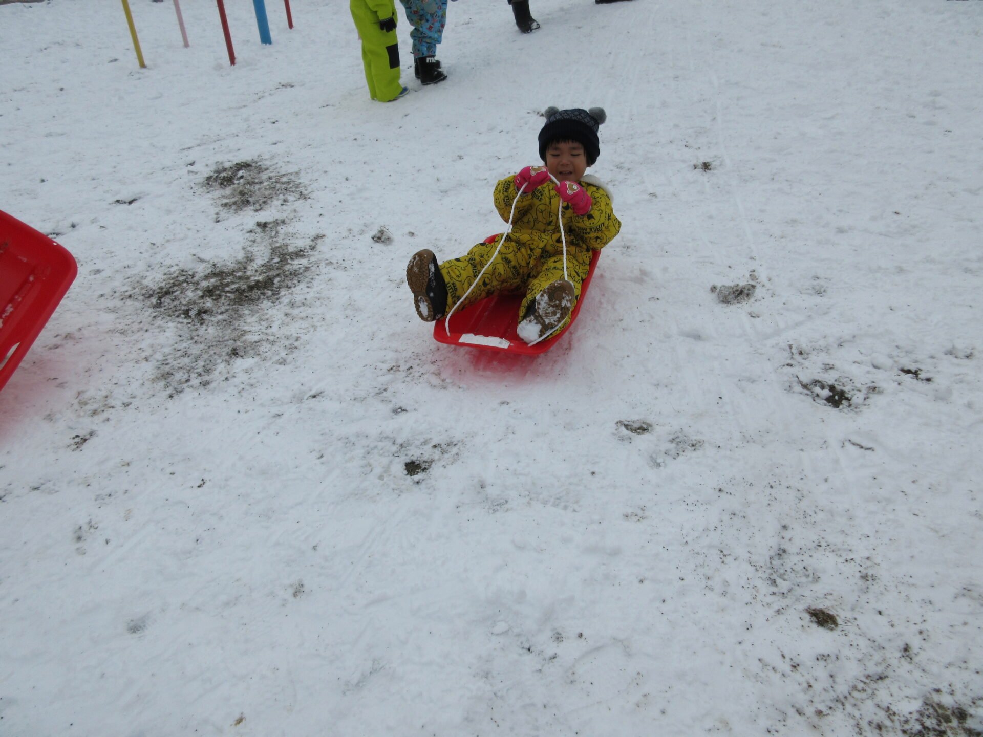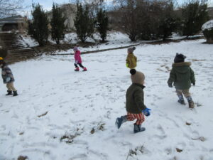 冬ならではの遊びをする中で、子どもたちの「楽しい」「やってみたい」の気持ちやいろいろな発見を受け止め、一緒に楽しみながら保育をしていきたいと思います。